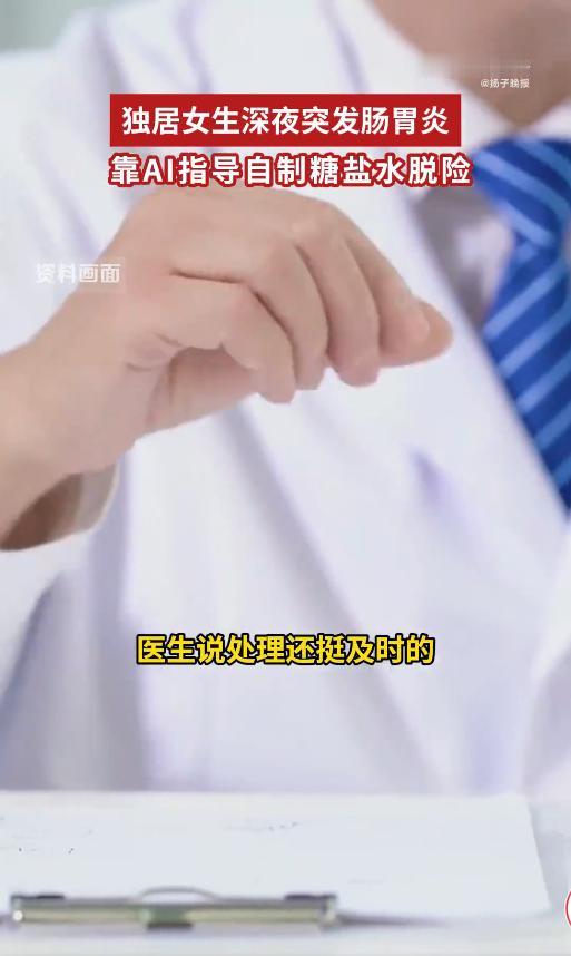“是AI救了我!”12月21日,江苏苏州,一女子突然肚子疼,接连上了好几趟厕所,她担心坚持不到去医院,情急之下就用AI进行诊断,并按照给出的建议应急,没想到真的恢复了不少,去医院检查后,医生都说处理的非常好!网友:这就是科技的意义。 这几年,AI技术发展得越来越强大,不少人也都接触过,用AI来辅助工作非常的便利,能够省下不少时间,而江苏的李女士,更是靠AI救了自己一命! 李女士独自一个人居住,当天晚上,她睡得正香,肚子却突然疼了起来,这次的疼痛非常强烈,李女士在床上扭来扭去,额头上满是豆大的汗珠。 紧接着,李女士又捂着肚子走进厕所,整个人都要被拉虚了,她勉强穿上衣服,打算去医院查一下,可是双腿却已经使不上力气,很难坚持到下楼。 在这紧要关头,李女士想起手机上有一款AI软件,便将自己的病情告诉了小助手,很快,AI就分析出了病症并给出急救建议。 这个时候李女士也只能死马当活马医,在AI的指导下自制了一碗糖盐水,喝下后没多久,她就感觉舒服多了,随后又找来暖水袋放在肚子上,缓解了肠道的痉挛。 第二天清晨,李女士已经恢复了很多,她前往医院检查,就连医生说她处理的很及时,并没有什么大问题。 网友看后表示,AI真是太好用了,是真的能够帮助到人们,不过身体不舒服,还是建议立即去医院治疗,以免延误了病情。 信息来源:《独居女生深夜肠胃炎靠AI自救脱险》扬子晚报