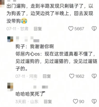 出门遛狗,走到半路发现只剩链子了,以为狗丢了,边哭边找了半晚上,回去发现没带狗