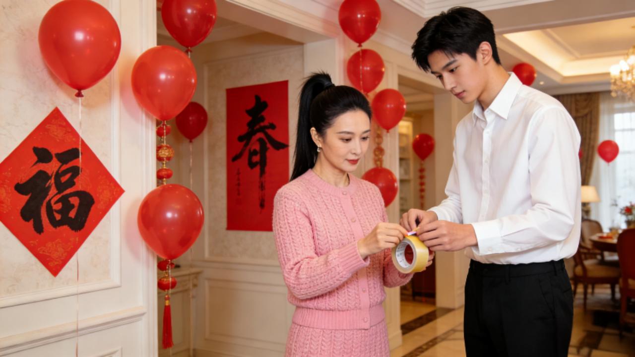 王艳母子元旦布置豪宅!19岁球球帅成男团脸,八块腹肌藏不住 元旦将至,娱乐圈掀起一波“新年仪式感”热潮,演员王艳在社交平台分享的亲子布置日常瞬间刷屏。51岁的她扎着高马尾,身着粉色针织衣,和19岁儿子球球一起装点北京别墅,大红福字、喜庆红气球挂满厅堂,满屏都是治愈的年味。 镜头里的球球早已不是当年被调侃的“混世魔王”,近180cm的身高比妈妈高出一头,130斤的纤瘦身形搭配俊朗五官,细皮嫩肉的模样完全看不出是北大体育生。他熟练地帮妈妈递胶带、挂装饰,墙上遒劲的红底毛笔字更是出自他手——王艳多年前就曾晒过儿子10岁的书法作品,这份才艺如今成了新年装饰的点睛之笔。 更让人惊喜的是球球的蜕变,通过坚持健身练出八块腹肌,曾经的壮实少年逆袭成“行走的衣架”,白色衬衣配黑裤的造型被网友直呼“可以直接出道”。而王艳状态同样能打,高马尾造型减龄感拉满,母子同框呈现“你已长大,我还未老”的美好画面,网友调侃“说是姐弟都毫不违和”。 不同于明星家庭常见的精致摆拍,这对母子的布置过程满是生活气息:球球认真打下手,王艳耐心指导贴福字的角度,没有奢华堆砌,却靠传统红色装饰和亲子互动,把“年味”拉满。正如王艳所说,“不是年味淡了,而是制造期待的人变成了我们自己”,这份用心让网友纷纷共鸣“这才是新年该有的样子”。 从淡出荧幕陪伴成长,到看着儿子蜕变成懂事学霸,王艳用陪伴书写着最好的育儿答案。这个元旦,没有流量炒作,只有母子间的温情互动和对新年的美好期许,这样的真实与温暖,正是当下最动人的节日风景