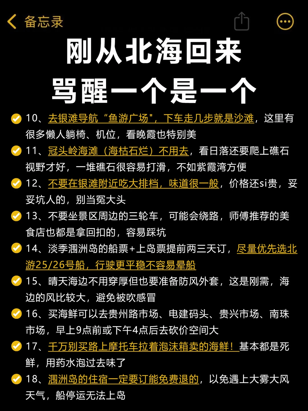 北海回来了,给大家总结点攻略