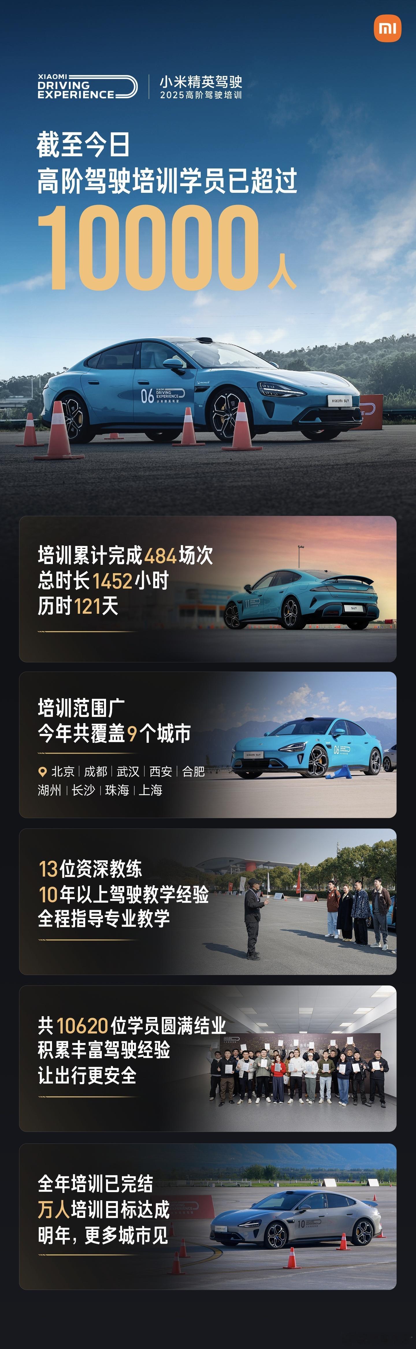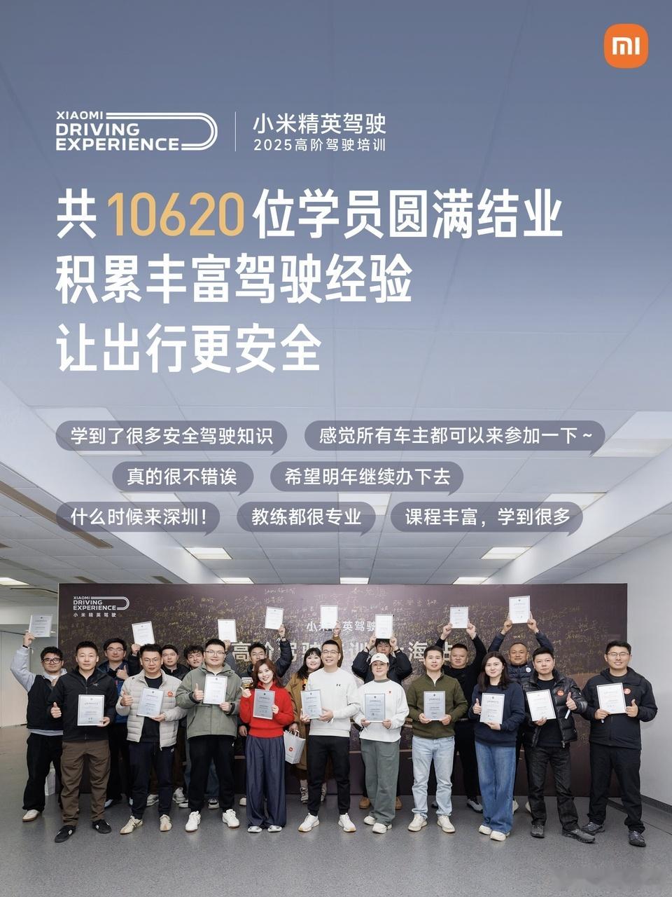小米高阶驾驶培训1万人目标达成能把安全做到这份上,小米是真下功夫了,搞了484场免费安全培训,实打实服务上万人!场地、教练、科目、餐饮一整套下来,人均成本2000元都打不住。对标宝马、保时捷同类培训,市场价普遍在6000–8000元,而小米选择的是免费给用户。更重要的是专业度,从理论到实操流程完整,湿滑路面、制动、避险、金卡纳全都有。很多人开了多年车,其实并不了解极限工况下该怎么控车,能开车和会开车,真的是两回事,尤其是电动车。从产品到服务,再到驾驶培训,小米把安全真正落实到了用户身上,能做到这一步的车企,说实话,并不多。