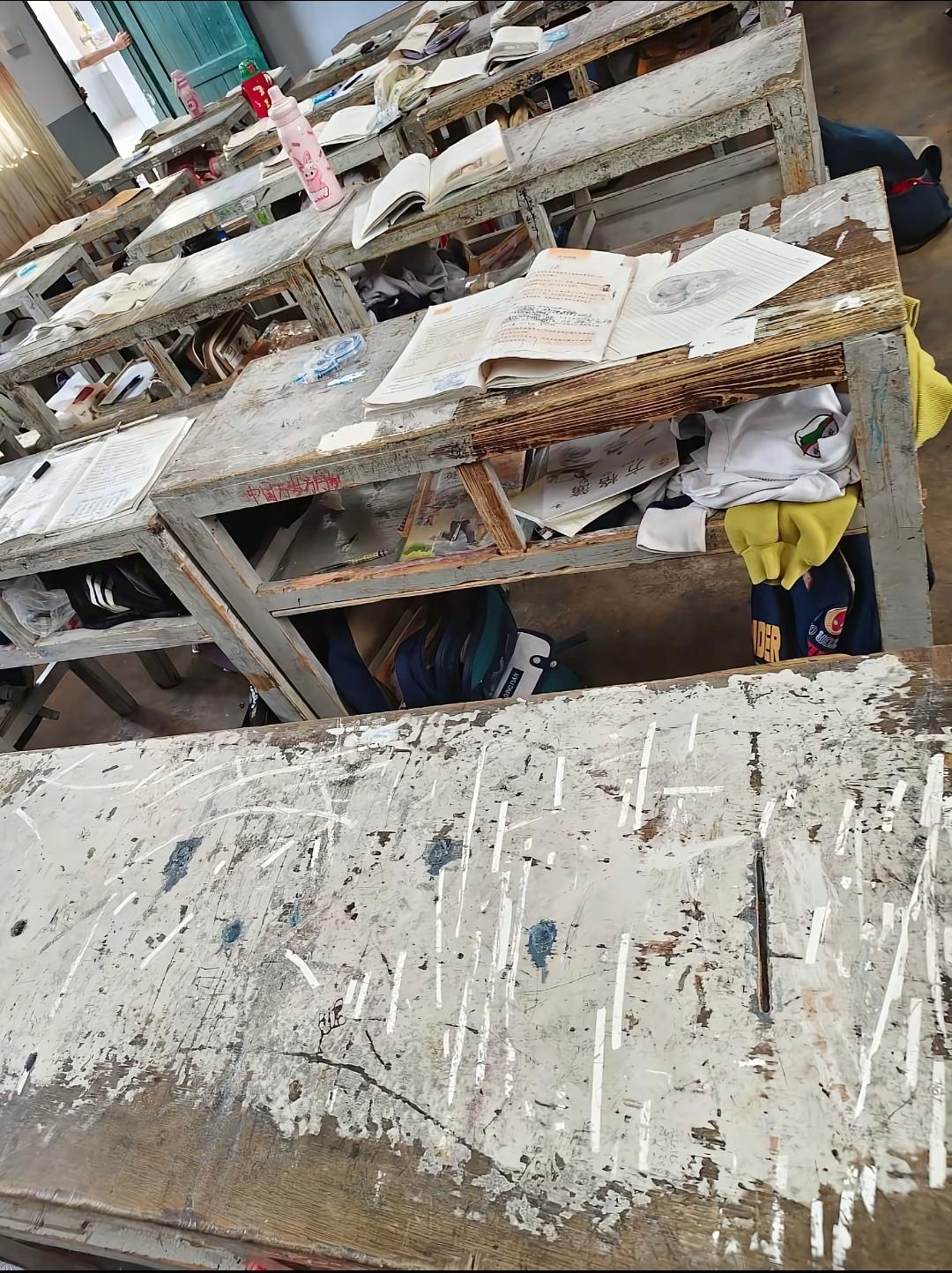 课桌过于老旧但苦于经费不足! 这可是广东呀,对外开放的最前沿。 峡山镇,潮汕地区最富有的一个镇, 没有之一,土豪遍地,给孩子用这么烂的桌子?最富裕最发达的省份,试问投入教育的经费去哪里了? 潮汕地区修庙、建祠堂几千万上亿, 教育这方面配套也要加强一下。 宗族脸面重要,下一代的教育更重要啊!