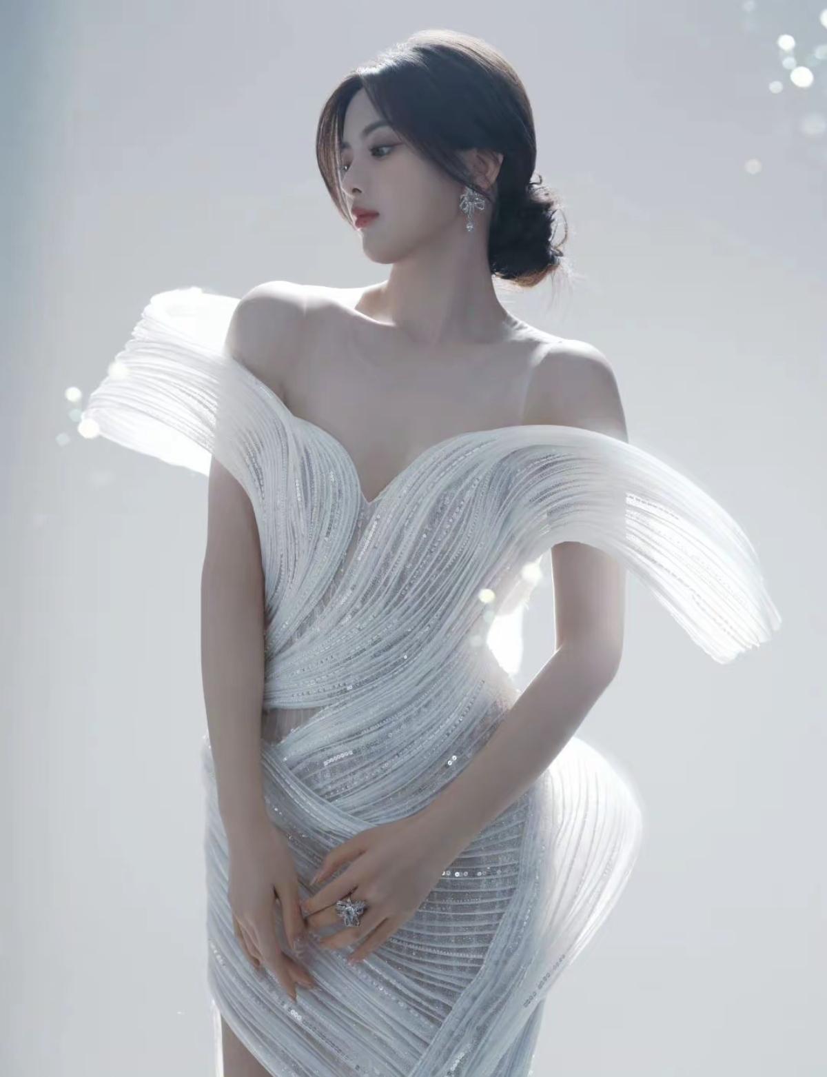 白色长裙勾勒出曼妙身姿,一字肩尽显优雅天鹅颈,杨超越今晚美得好有攻击性[加一]简单的白色系,却被杨超越穿出了极致的高级感,温婉又大气[赞]娱乐明星