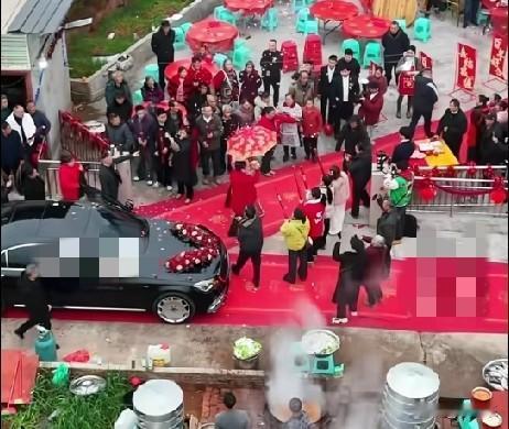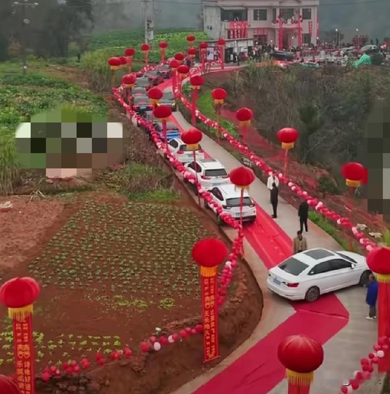 12月30日,四川宜宾观音镇,新郎准备10000个气球迎接新娘,10000个气球全布置在道路两旁,远远望去,很是喜庆和气派。 十里红妆呀!好喜庆!新郎一定是很心细的人,用心布置的婚礼充满了爱。农村的婚礼,即使不去豪华酒店,一样可以办得很气派,浓浓的喜庆溢出来。