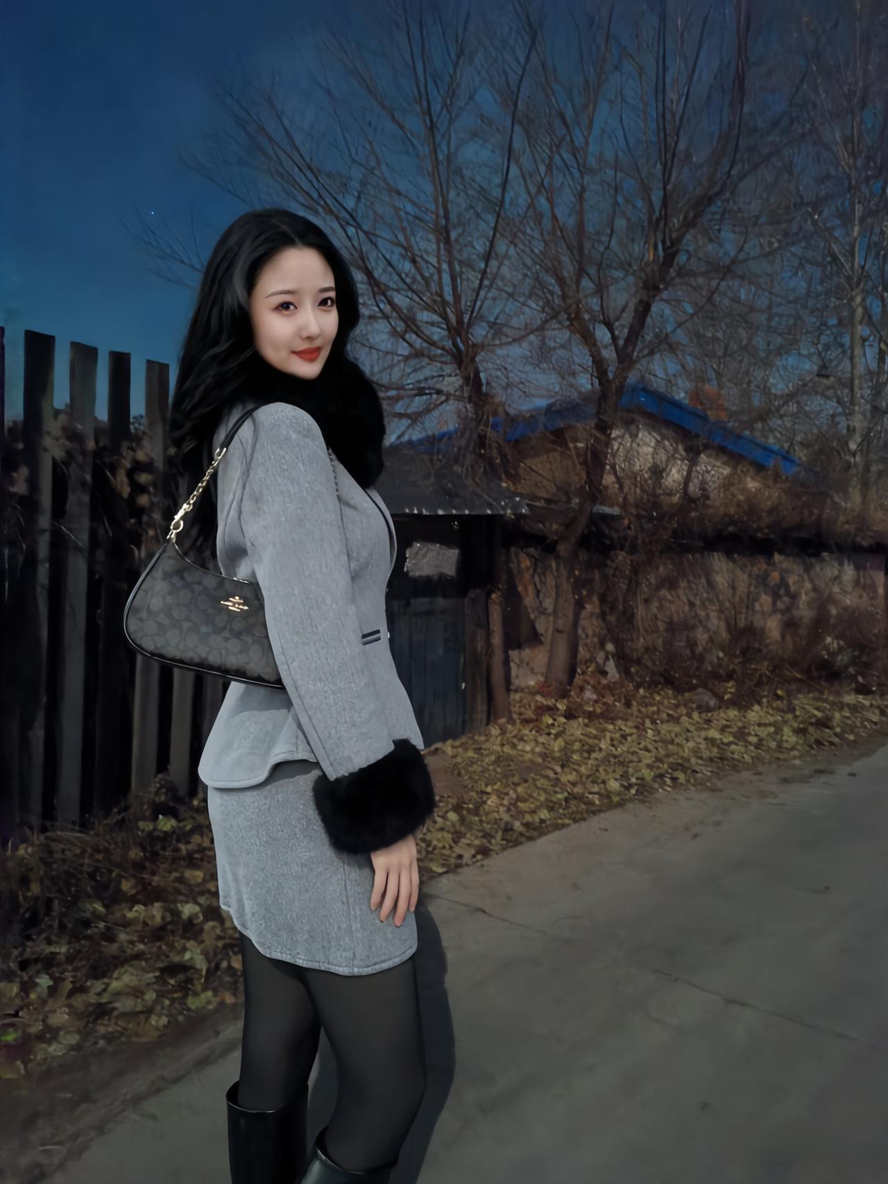 寒林覆暮烟,灰衣踏霜阡。 影逐荒苔步,悠然向远天。