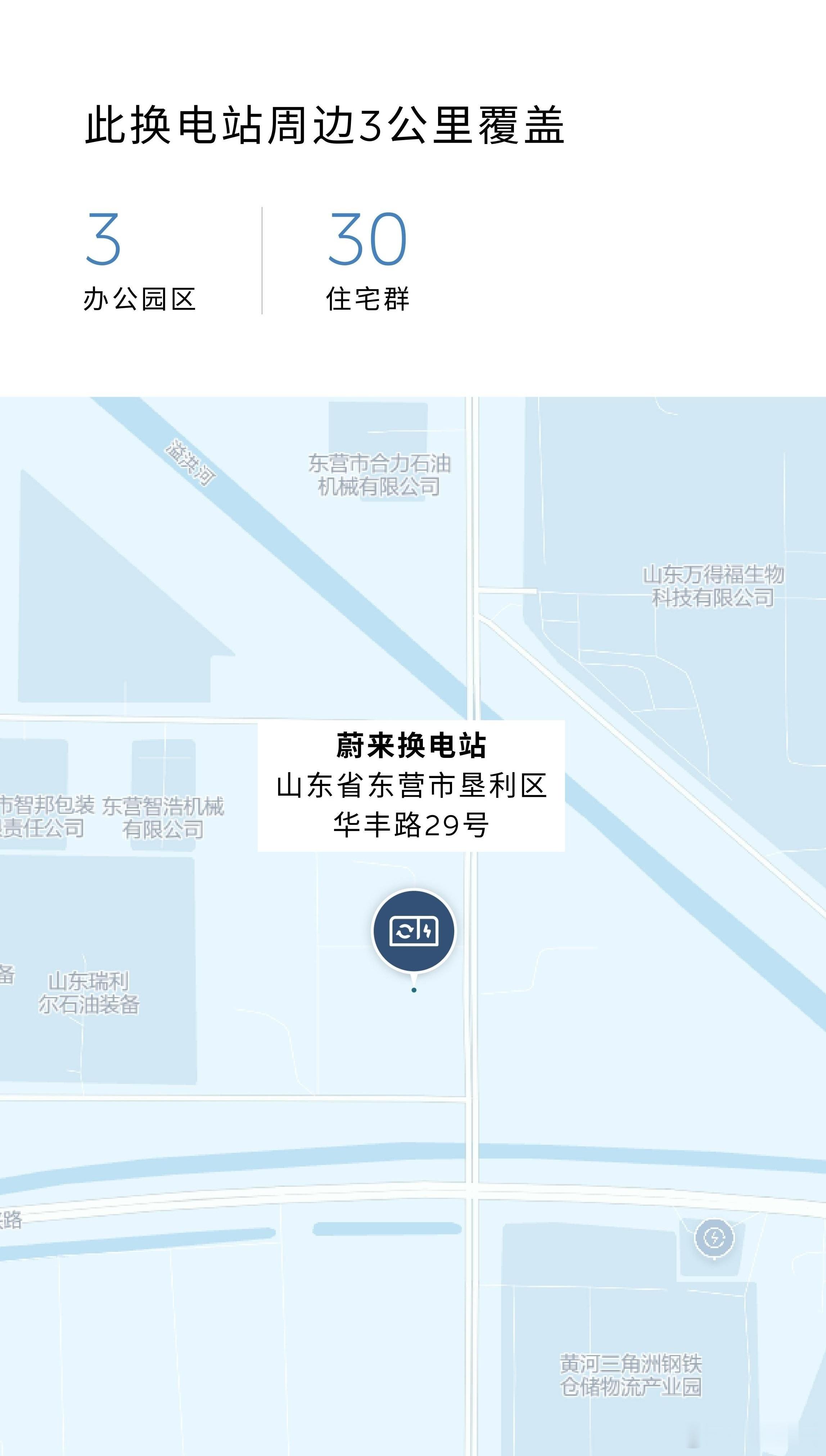 换电站是电动车的加油站蔚来换电站 | 东营悦岛华庭 上线周边3公里覆盖2大核心商圈、3大办公园区、15大住宅群截至12月30日,蔚来已在山东省布局222座换电站蔚来换电站 | 东营西城国网 上线周边3公里覆盖6大核心商圈、9大办公园区、25大住宅群截至12月30日,蔚来已在山东省布局222座换电站蔚来换电站 | 东营垦利华丰路 上线周边3公里覆盖3大办公园区、30大住宅群截至12月30日,蔚来已在山东省布局222座换电站蔚来换电站 | 东营河口创业大厦 上线周边3公里覆盖2大核心商圈、1个办公园区、20大住宅群截至12月30日,蔚来已在山东省布局222座换电站蔚来换电站 | 东营广饶金田小商品城 上线周边3公里覆盖5大核心商圈、5大办公园区、40大住宅群截至12月30日,蔚来已在山东省布局222座换电站蔚来换电站 | 东营利津凤凰大道 上线周边3公里覆盖4大核心商圈、8大办公园区、60大住宅群截至12月30日,蔚来已在山东省布局222座换电站,在全国布局3666座换电站蔚来换电去哪都方便