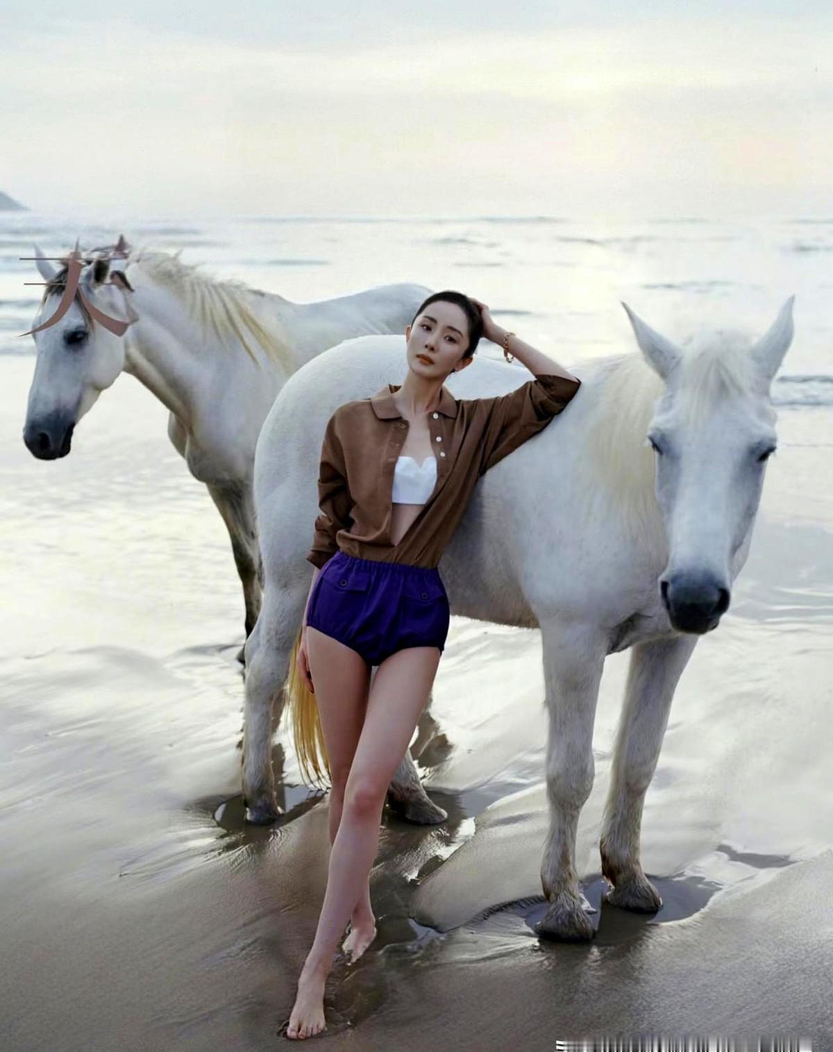 杨幂这腿长,你敢信她才166.5厘米? 内娱圈炸了,杨幂终于拿下了她人生第一本Vogue中国单人正刊封面!2026开年刊,2025年12月29号官宣,直接爆上热搜第一。 这次“海边女骑士”大片在三亚拍的,她穿着Prada 2026春夏新装,这也是她当上代言人后第一个顶级合作。靠着白马,风吹动裙摆,那氛围感,松弛又有劲儿。 全网都在疯传她靠在马背上那张,棕色衬衫配紫色短裤,一双腿又长又直,简直是“无代餐”级别。有人说肯定是P图和角度。但更多人觉得,她166.5的身高能有这比例,是天生加后天会穿搭,绝了绝了。 这封面意义太大了。不光让她达成了“五大女刊二轮满贯”,逼近百封大关,更是她2025年事业井喷的最好注脚。年初靠《生万物》台网双爆,收视破2.8,年末又拿了尖叫之夜年度演员。 作品和时尚双双登顶,这回粉丝是真解气,路人也服气。 身高真不是硬伤,比例和气场才是王道。这波操作你给打几分?
