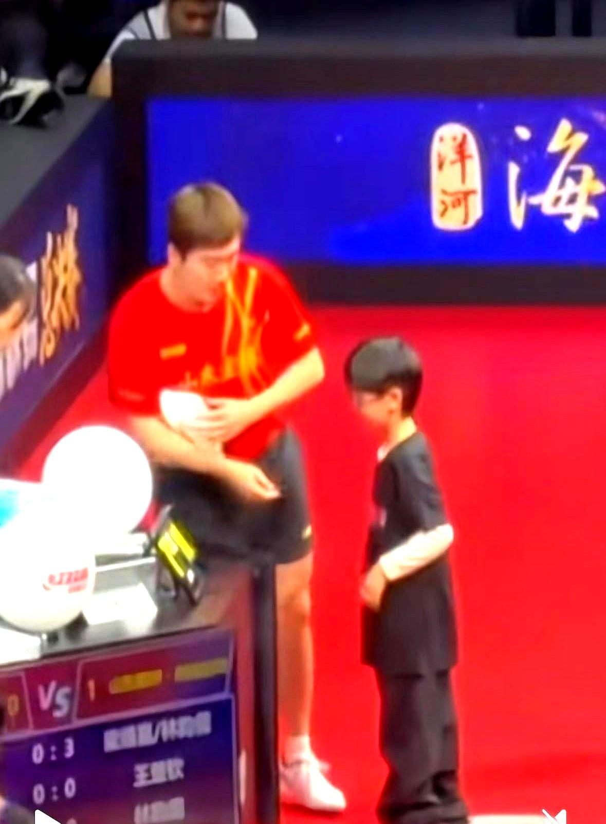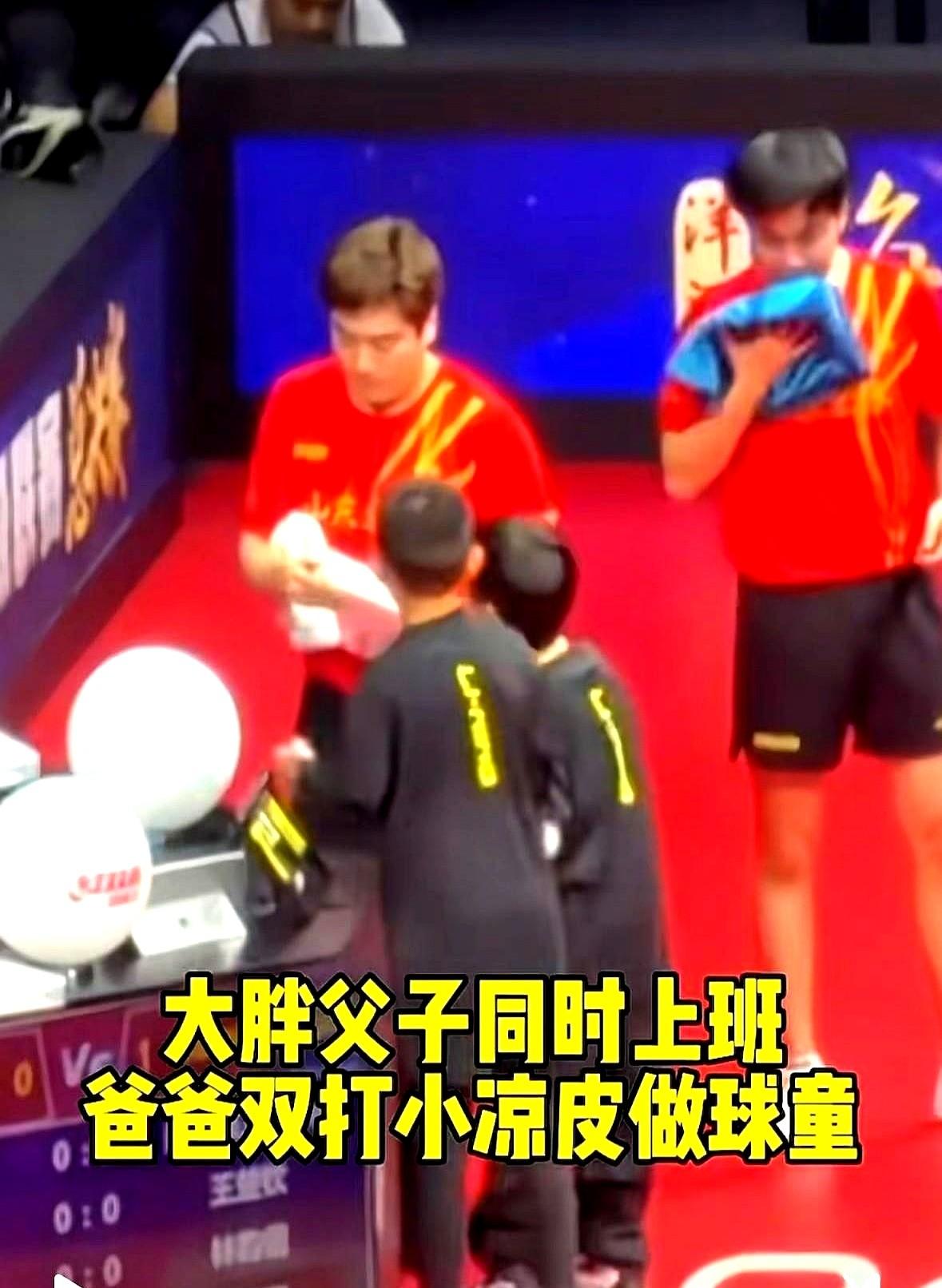 梁靖崑把赛场变儿子游乐场,旁边王楚钦都羡慕哭了! 刚结束的乒超总决赛,山东魏桥3-0卫冕夺冠。梁靖崑带着伤上阵,场上是拼命三郎,场下回头看见自己7岁儿子“凉皮”满场跑着捡球,那笑容啊,简直了简直了,比赢球还开心。 小凉皮那动作熟练得,一看就是老球童了。 镜头给到王楚钦,大头那笑得叫一个真心实意,眼睛里全是羡慕,就差把“哥们儿你太幸福了”写脸上了。这种兄弟间的真情,装不出来。 颁奖的时候更暖。王楚钦主动示意梁靖崑把娃抱上领奖台,还伸手帮忙一起抱,那画面被网友说是“一家三口既视感”,咱们“国乒团宠叔叔”这称号不是白叫的。 这也不是第一次了。梁靖崑之前还专门去儿子就读的板厂小学,给娃在校内比赛拿冠军颁奖。这种言传身教,把自己的战场变成儿子的乐园,才是最好的传承。 竞技体育最打动人的,就是这种藏不住的父爱和队友情,比啥都珍贵。你们说是不是这个理儿?