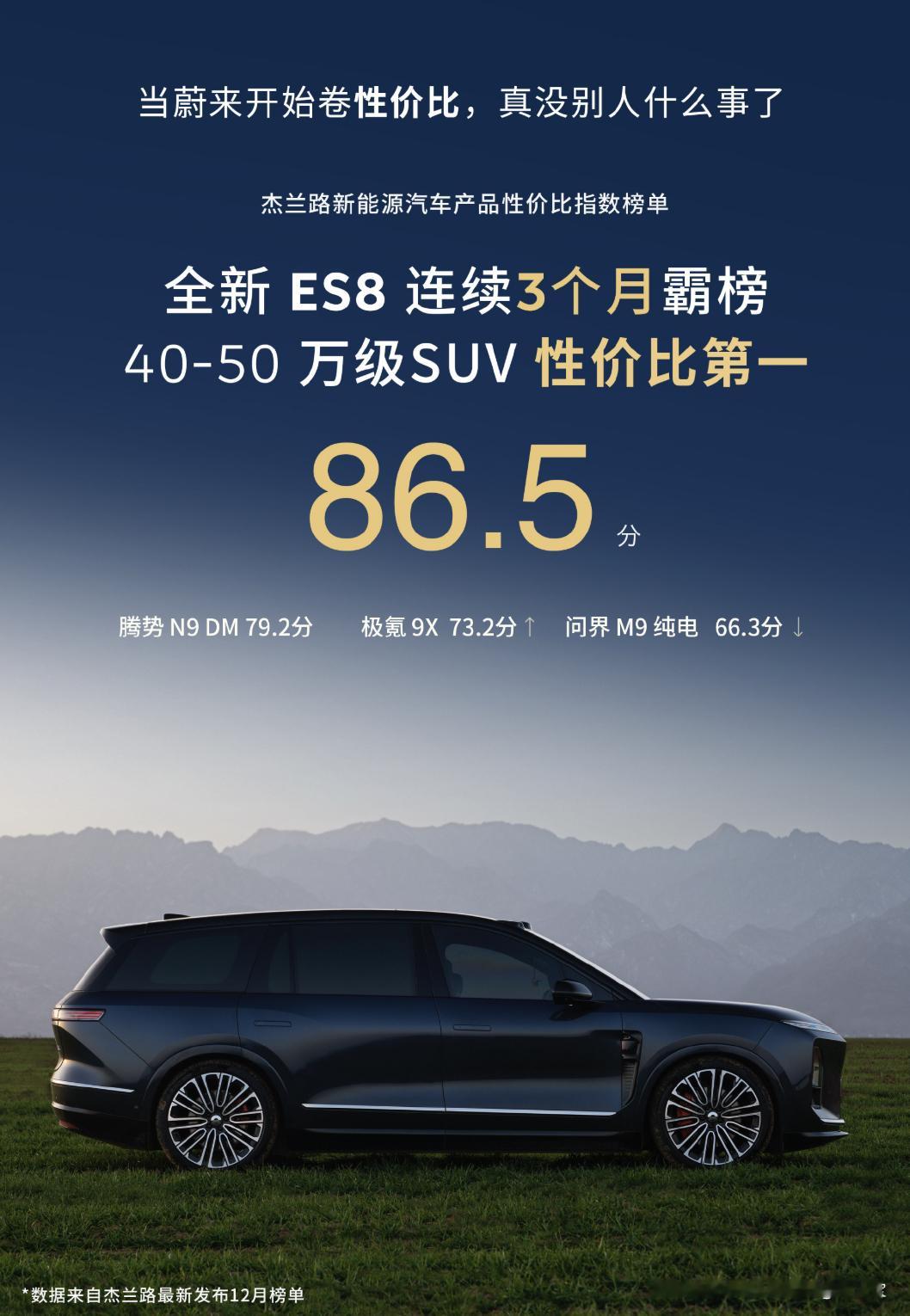 看到有个海报图,说蔚来ES8连续三个月成40~50万元级别SUV性价比第一的,这是真的嘛?