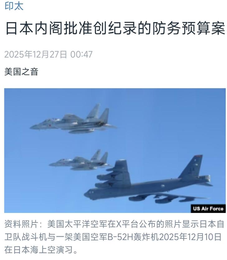 谁能想到,一向贴着“和平宪法”标签的日本,如今竟掏出了史无前例的防务预算,近日日本获批的约9.04万亿日元军费,换算成人民币差不多是四千多亿,这个数字不仅刷新了日本自身纪录,更在印太地区掀起了一阵不安的涟漪。 更值得留意的是,这份天价预算背后,离不开美国的默许与支持,这绝非地区之福,反而像是一颗埋在和平土壤里的定时炸弹。 熟悉印太格局的人都清楚,日本早已是美国在这一区域最得力的“马前卒”,从频繁参与美国主导的联合军演,到在亚太海域配合美军开展巡航,日本几乎在美国的每一项印太战略里都扮演着不可或缺的角色。 这次美国对日本巨额防务预算的支持,本质上就是想借日本的手,在印太地区搅起更多风云,以此遏制中国的发展步伐。毕竟对美国而言,让盟友冲在前面,既能节省自身成本,又能精准牵制竞争对手,可谓一举两得。 而日本这边,也恰好借着美国的撑腰,一步步释放自己压抑已久的军事野心,这些年,日本不断突破“和平宪法”的束缚,从修改安保法案允许自卫队海外行动,到研发远程打击武器,再到如今的天价军费,每一步都在偏离战后的和平轨道。 这次的巨额预算,很大一部分会投入到先进武器的采购和军事技术的研发上,比如升级宙斯盾系统、扩充导弹部队规模,其目的就是想提升自身的军事威慑力,摆脱以往的军事限制,成为地区军事强国。 但日本这番操作,无疑是在给印太地区的稳定添乱,印太地区本就存在复杂的地缘政治博弈,多个国家之间有着历史和领土层面的分歧,各方一直努力维持着脆弱的和平平衡。 日本突然加码防务开支,必然会引发连锁反应,周边国家出于自身安全考量,只能被迫调整防务政策,加大军备投入以作防备,一场隐形的军备竞赛眼看就要拉开序幕。 要知道,地区和平就像一张薄纸,军备竞赛就是最锋利的尖刀,当各国都把精力和资源投入到武器研发和军队建设上,原本可以用于经济发展、民生改善的资金被大量挤占,不仅会拖累地区整体发展,还会让各方的对立情绪不断升级。一旦出现误判或摩擦,很容易从局部冲突演变成更大范围的动荡,让印太地区陷入难以挣脱的动荡漩涡。 美国想借日本之手制衡地区格局,日本想靠美国支持实现军事崛起,这种互相利用的勾结,最终伤害的只会是整个印太地区的和平与稳定。 巨额防务预算从来不是安全的保障,反而会加剧地区紧张局势,当和平的空间被军事野心挤压,没有任何一个国家能独善其身,这或许是美日双方都该正视的现实。 编辑:Q 本文内容皆为个人看法,如有更好的见解欢迎在评论区留言讨论。
