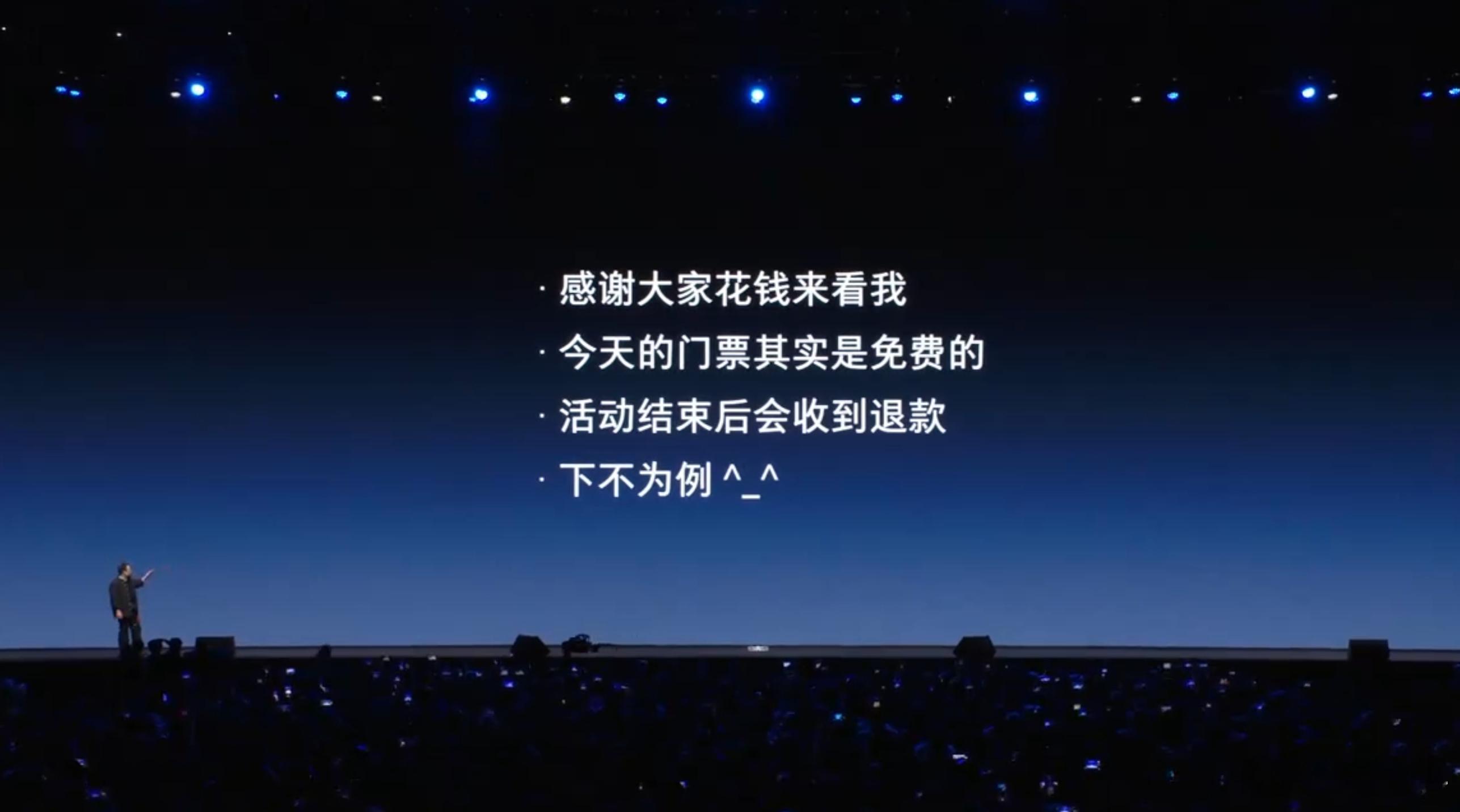 罗永浩科技春晚 4000人里有400人是免费的,估计是400个媒体,但……老罗说了,花钱来看他的所有人都退票~也就是免费看老罗,哈哈哈。