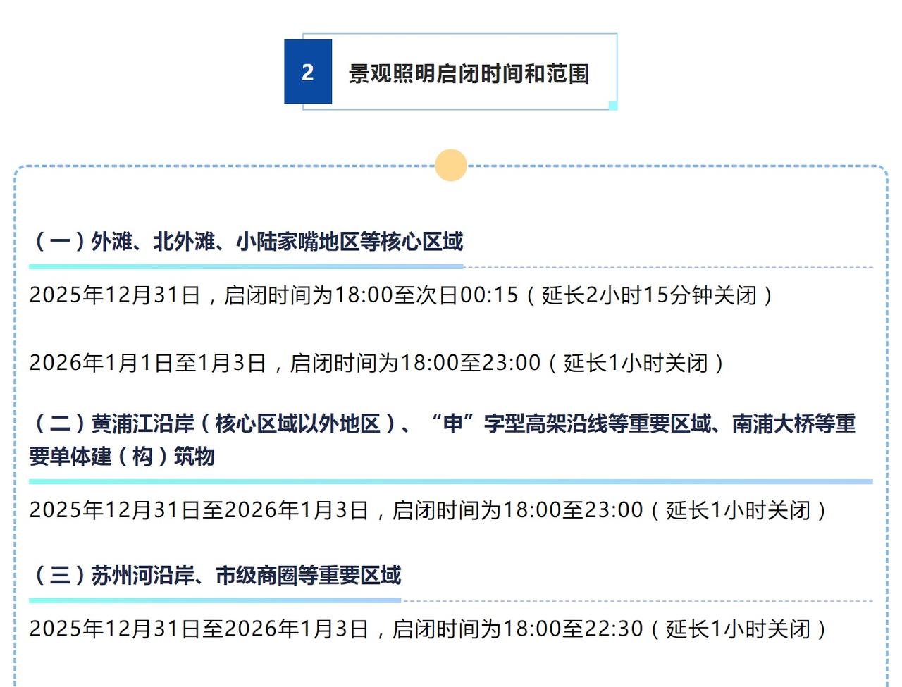 【元旦假期,上海景观照明将开启重大活动模式】@绿色上海 介绍,2026年元旦假期,全市景观照明将开启重大活动模式,营造欢乐祥和的节日氛围。详见↓最美上海全民一起拍城市建设管理与便民服务