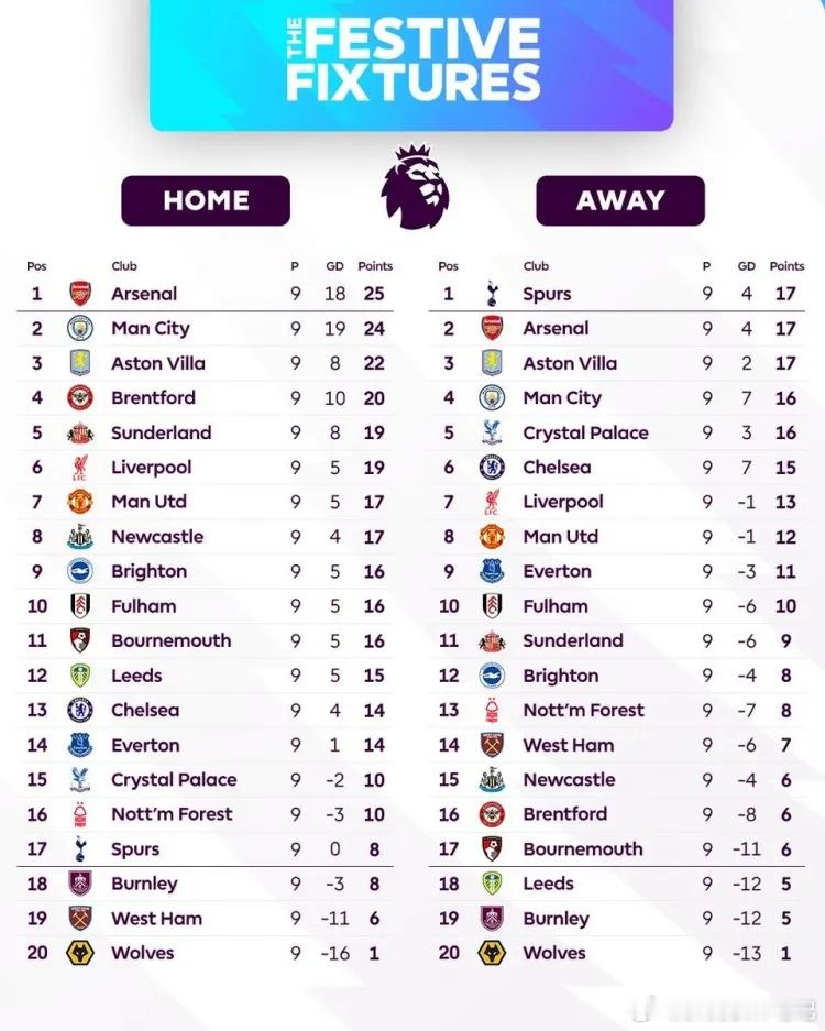 英超主客场积分榜暗藏玄机!阿森纳主场25分一骑绝尘,客场17分也能并列领跑,妥妥的双线王者。谁是本赛季最大黑马?客场之王热刺必须拥有姓名,这波逆袭属实没想到!反观布伦特福德和纽卡斯尔,典型的“主场猛如虎,客场怂如鼠”,主客场反差也太大了!英超阿森纳vs阿斯顿维拉