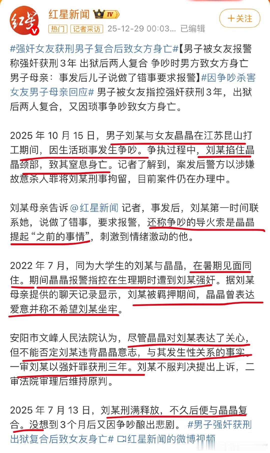 强奸女友获刑男子复合后致女方身亡桂哥评:不知道该怎么评了,反正大家要知法,懂法,守法!切记!
