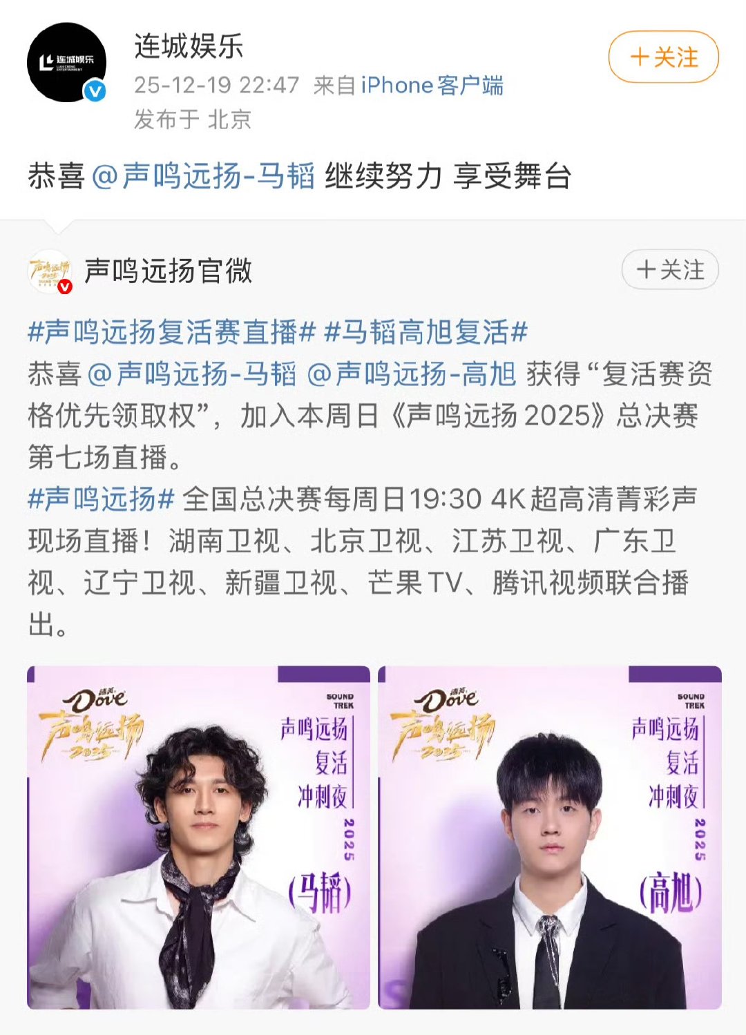青你老秀人愿旗下员工得音综冠军自己是选秀过来人,现在当老板给旗下马韬打气,跨年后台这段互动我能反复看一百遍!声鸣远扬