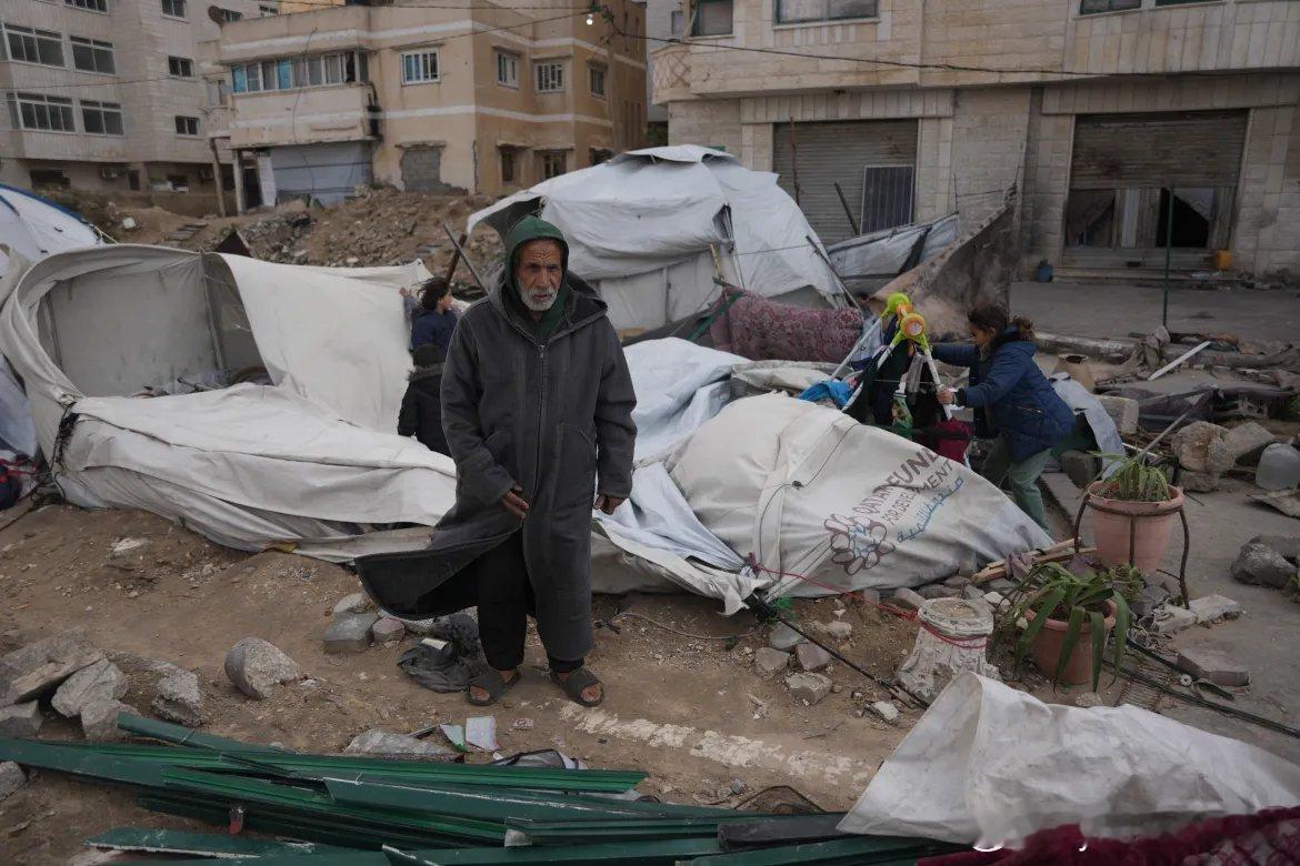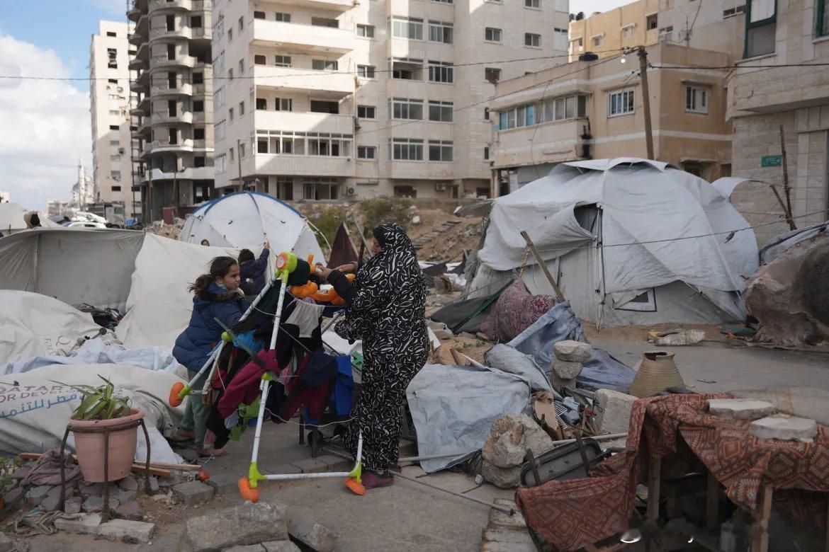 半岛图片:冬季洪水对加沙流离失所者营造成严重破坏,以色列阻断援助 暴雨淹没加沙,家庭在援助短缺和以色列大规模破坏下艰难保持干燥。图1 巴勒斯坦人试图在加沙南部汗尤尼斯一处海滨帐篷营地被夜间降雨淹没后收拾帐篷。[穆罕默德·贾朱/美联社照片]作者 新闻机构发表于2025年12月29日 冬季大雨在周末猛烈袭击加沙地带,流离失所营地被脚踝深的水淹没,巴勒斯坦人在破旧、脆弱的帐篷中努力保持干燥。这些巴勒斯坦人在以色列两年多的种族灭绝战争中被迫流离失所,这场战争摧毁了被围困的飞地的大部分地区。 在汗尤尼斯,湿透的毯子和淹没的陶土烤炉让痛苦更加难熬。穿着拖鞋的孩子们穿过水坑,而成年人则拼命用铲子和铁罐从帐篷中抽水,或从泥泞中清理倒塌的避难所。 “积水形成,还有难闻的气味”,从加沙南部拉法流离失所的马吉多林·塔拉贝因说。“帐篷飞走了。我们不知道该怎么办,也不知道该去哪里。” 她和家人试图用手把湿透的毯子拧干。 “我们早上醒来时,发现水已经进入了帐篷,”同样被汗尤尼斯驱逐的埃曼·阿布·里齐克说。“这些是床垫。他们全都湿透了。” 她补充说,家人仍在哀悼不到两周前丈夫的去世。 “调解人在哪里?我们不想要食物。我们什么都不想要。我们累坏了。我们只需要床垫和被子”,法蒂玛·阿布·奥马尔一边试图稳定即将倒塌的避难所一边恳求道。 据加沙当局称,本月至少有15人死亡,其中包括三名婴儿,因降雨和气温骤降导致体温过低。 应急救援人员警告不要留在受损建筑物中,因为有倒塌风险,但由于以色列持续不断的轰炸,大部分地区已成废墟,避难选择非常有限。联合国7月的估计显示,加沙近80%的建筑已被摧毁或损坏。 自以色列与哈马斯停火以来,已有414人死亡,1142人受伤,巴勒斯坦总死亡人数至少达到71266人,卫生部数据显示。 人道主义组织报告称,向加沙的援助远远低于停火规定的数量。负责人道主义援助的以色列军事当局表示,过去一周有4200辆援助卡车进入加沙,连同卫生设备和冬季物资,但拒绝透露帐篷的具体数量。援助组织强调,现有物资无法满足压倒性的需求。 据挪威难民理事会领导的国际援助联盟“庇护集群”称,自停火以来,约有7.2万顶帐篷和40.3万块防水布进入加沙。 联合国加沙难民援助组织总专员菲利普·拉扎里尼在社交媒体上表示:“加沙的人们只能在脆弱、积水的帐篷和废墟中生存。这并非必然。援助物资无法按要求规模进入。”图2 25岁的沙伊玛·瓦迪与她一岁的女儿塔拉坐在加沙地带中部代尔巴拉为流离失所巴勒斯坦人临时搭建的帐篷内。[阿卜杜勒·卡里姆·哈纳/美联社照片]图3 巴勒斯坦人在加沙城港口附近海滩上的临时流离失所者营地接受捐赠的食物。[Jehad Alshrafi/美联社照片]图4 一名女子在汗尤尼斯的海滨帐篷营地被夜间降雨淹没后试图收回地毯。[穆罕默德·贾朱/美联社照片]图5 阿朱里家族成员守在他们被强风和暴雨摧毁的帐篷旁,地点是加沙市。[Jehad Alshrafi/美联社照片]图6 巴勒斯坦儿童站在加沙地带中部代尔巴拉赫流离失所者营地,周围搭建了临时帐篷。[阿卜杜勒·卡里姆·哈纳/美联社照片]图7 自2023年底以来,许多家庭一直住在帐篷里,这也是以色列对加沙种族灭绝战争的大部分时间。[Jehad Alshrafi/美联社照片]图8 巴勒斯坦儿童在加沙市的一个流离失所营地中携带装满水的塑料水罐。[Jehad Alshrafi/美联社照片]图9 据加沙当局称,截至12月,至少有15人死亡,其中包括三名婴儿,因降雨和气温骤降导致体温过低,数栋建筑倒塌。[Jehad Alshrafi/美联社照片]图十 本月早些时候的大雨淹没了加沙各地的帐篷和临时避难所,大多数建筑已被以色列的攻击摧毁或损坏。[穆罕默德·贾朱/美联社照片]