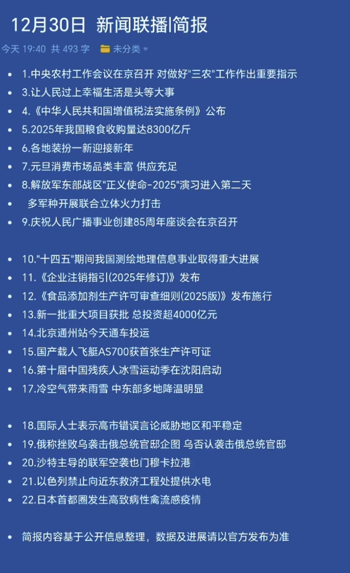 12.31周三 新闻联播里的投资机会! 军工电子,海工装备,大消费。农村工作会议,一号文件即将出台,冰雪经济旅游服务。