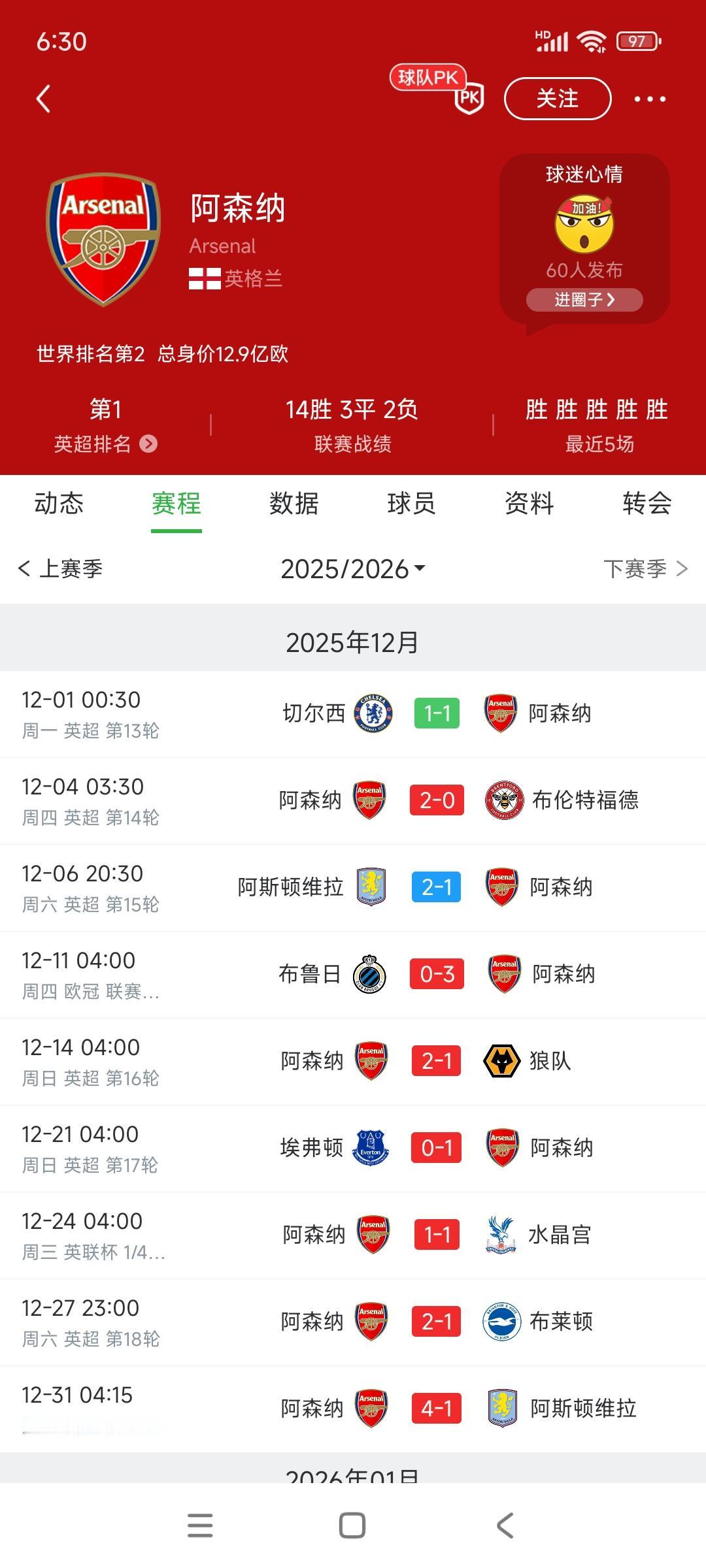 2025年阿森纳完美收官,英超领先5分,欧冠也排第一,双榜达到最佳化! 单说12月份平切尔西,输维拉,人们还以为他们完蛋了,最后一场大胜维拉! 2026年怎么说都会有一个大赛冠军吧。[大金牙]