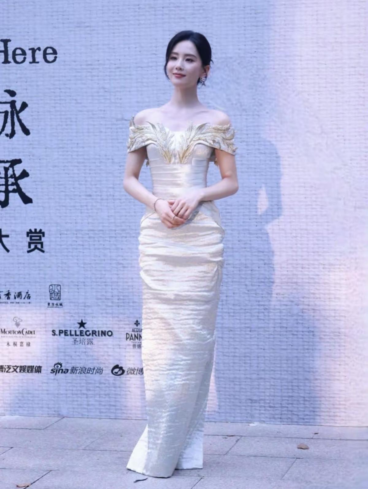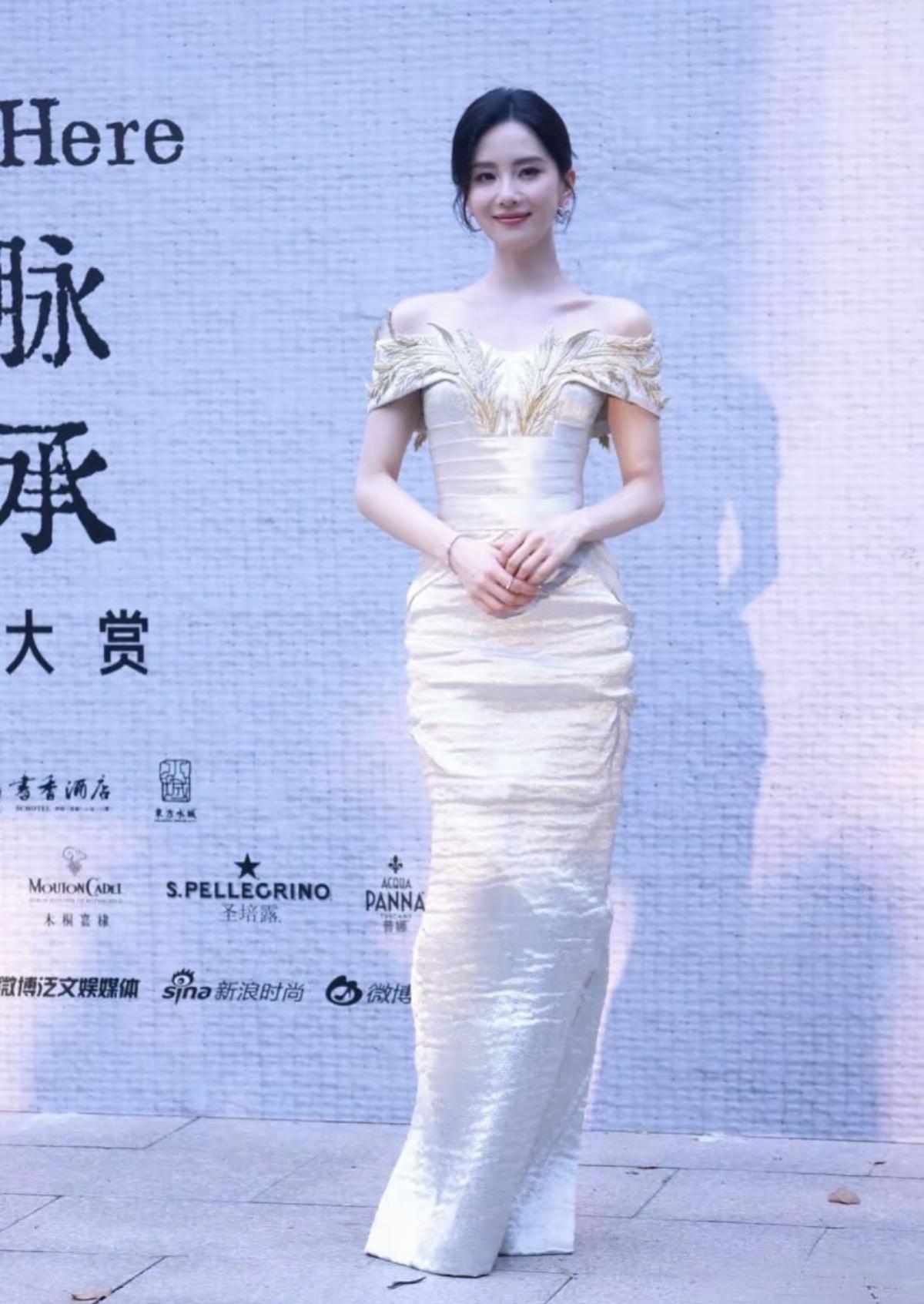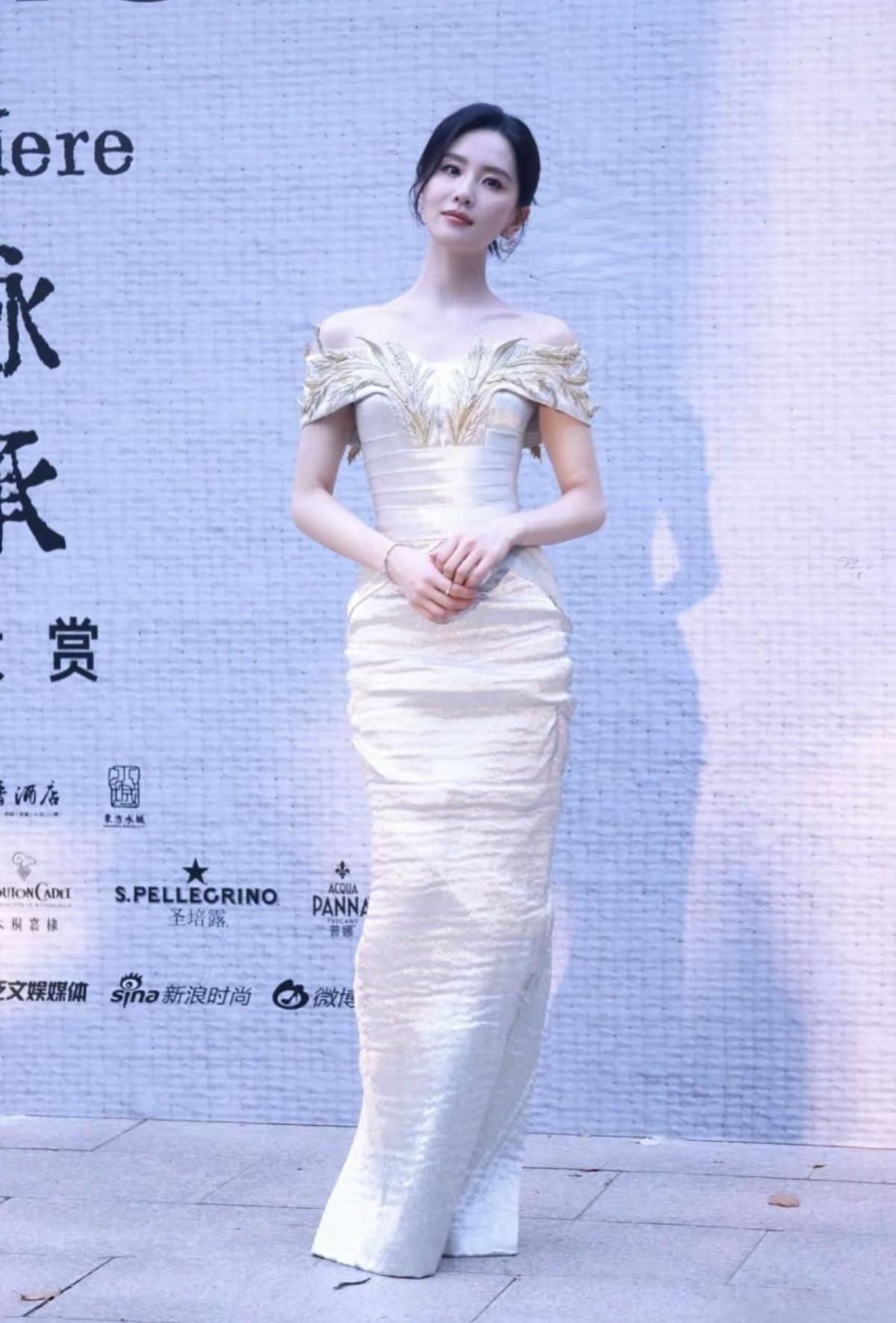 银调礼服缀满细碎光泽,修身版型贴合窈窕身姿,一字肩设计藏着含蓄性感,刘诗诗凭骨子里的端庄,穿出了高定级别的贵气[赞][加一]娱乐明星