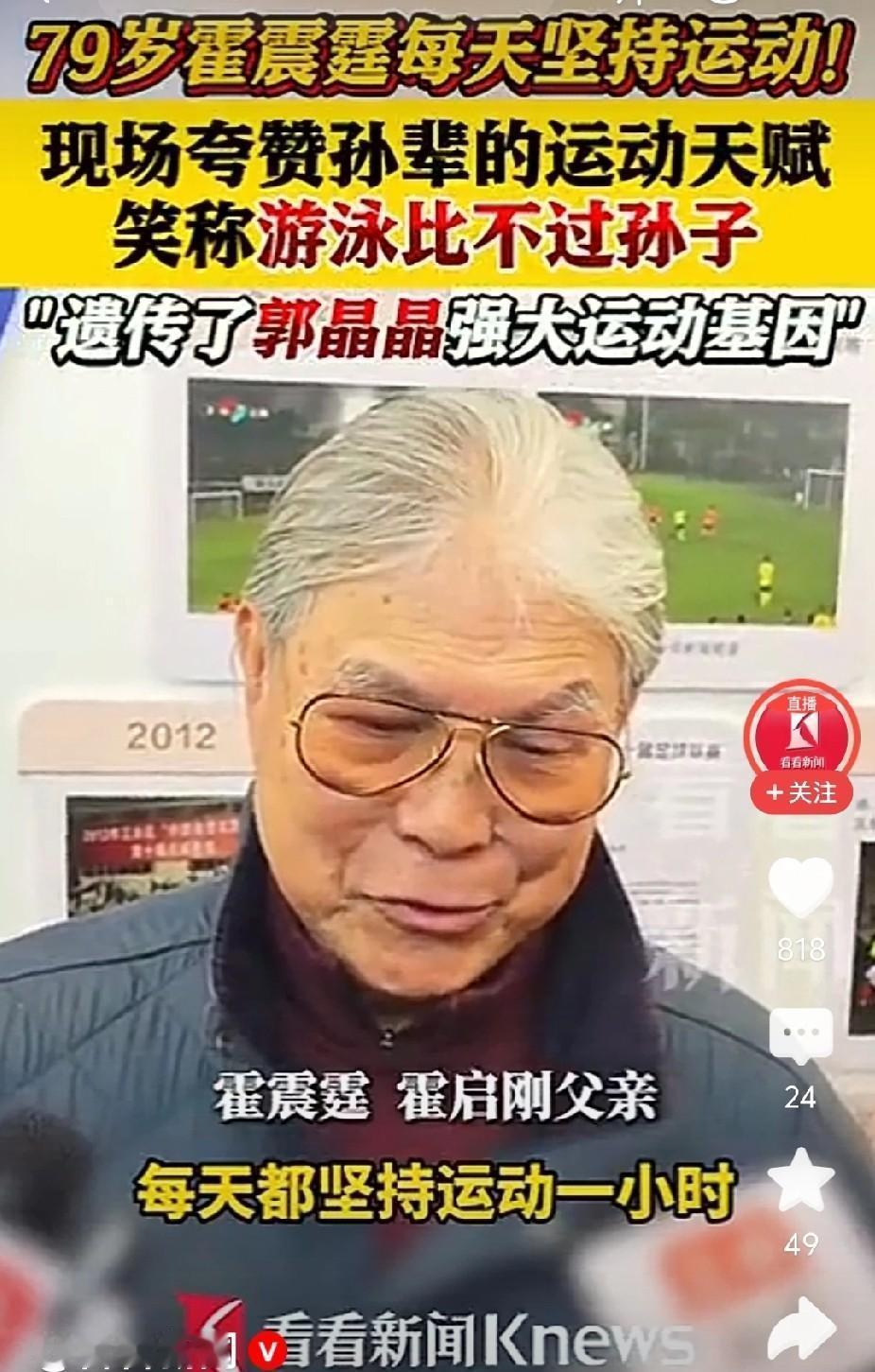 79岁的霍震霆还在健身房挥汗,却把孙辈的天赋全归她。 郭晶晶。 四枚奥运金牌压箱底,31个世界冠军刻进基因。8岁的霍中曦已经站上跳板,水花压得比同龄人静。 专业训练每周三次,空中姿态像极了他妈当年录像里的影子。 血脉这东西骗不了人。 老爷子锻炼一辈子,不如冠军儿媳一个遗传片段。 但郭晶晶抿嘴笑:他喜欢才行。 训练计划她亲手调,尊重比奖牌重要。 最后那句话藏着力:真正的传承不是强迫,是让天赋找到自己的水花。 多少家庭该听听这个。
