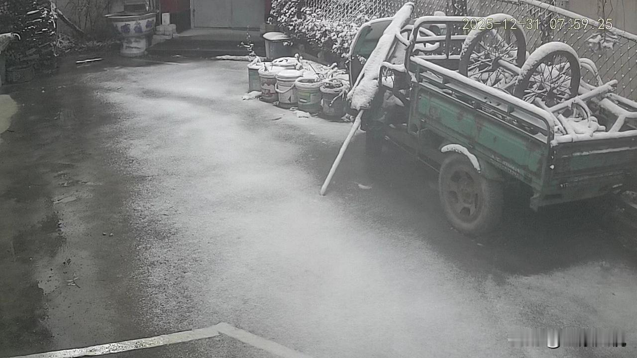 天水东部老家落雪了,而且挺大,这应该是2025年冬季的第一场雪! 昨天晚上从监控看,半个院子是湿的,下的还是雨,早上气温低,落小雪了。从窗户看,西安马路上是湿的,看来也下雨夹雪了,只不过地面没有落下雪。 明天就是2026年新年元旦了,俗话说,瑞雪兆丰年,希望老家天水和西安,风调雨顺,国泰民安,越来越好!甘肃初雪 甘肃大范围降雪 甘肃老家下雪