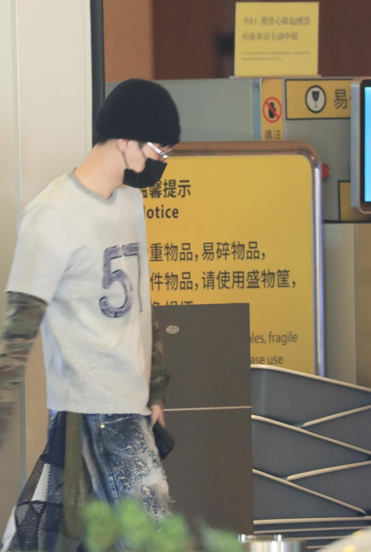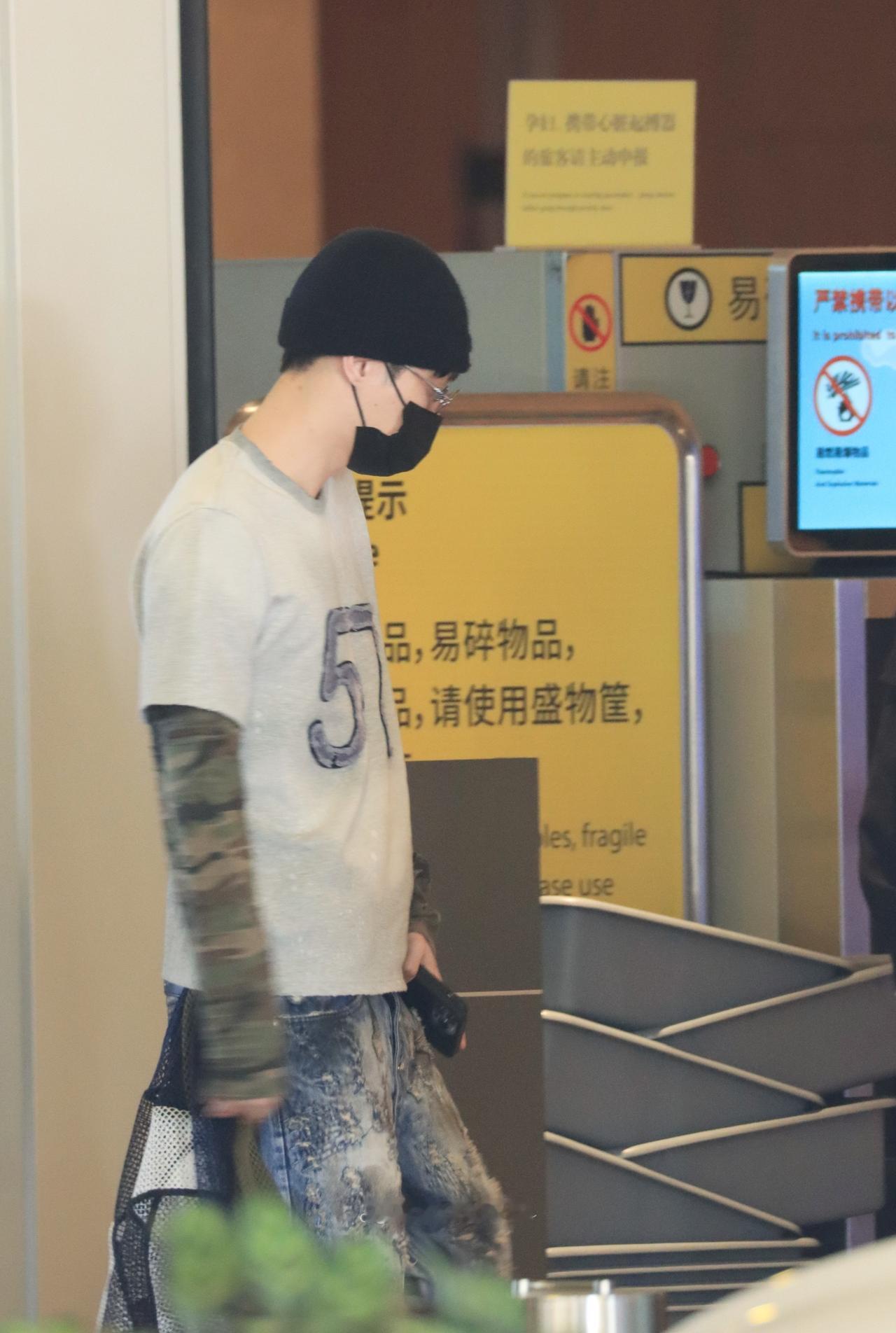 250324@张艺兴 宝安机场出发 4P+虹桥机场到达2P:迷彩服打底搭配短袖+黑色帽子+牛仔裤 简单搭配尽显时尚巧思 宝宝就是行走的穿搭指南 好帅呜呜