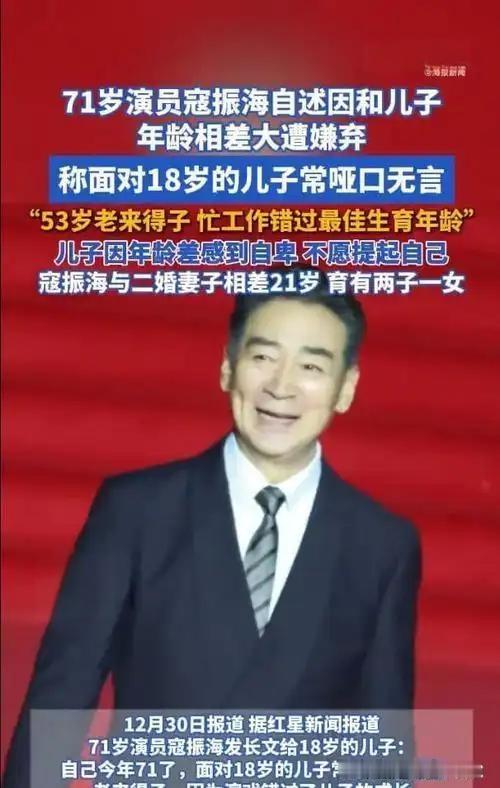 71岁寇振海发长文《这是一位老父亲的独白》,坦言53岁老来得子却因忙于拍戏错过儿子成长,父子53岁的年龄差让儿子在同学中自卑。如今儿子高三住校,每周仅几分钟视频通话,他感慨“最真切的愧疚,是在自己的人生里”。东寇世记 寇老西