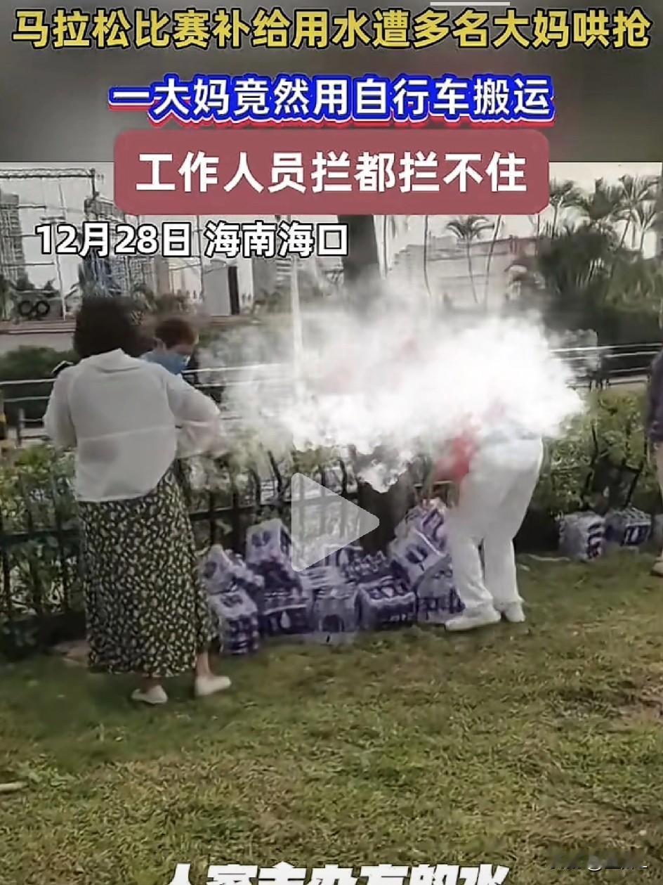 海口马拉松变“进货节”!一群大爷大妈赛场“零元购”,矿泉水香蕉一扫空!网友:这是来参赛还是来进货? 近日,海口马拉松赛道上演惊人一幕:补给站没等来运动员,先迎来一群“神秘组织”——几十位大爷大妈身穿统一服装,以百米冲刺的速度冲进补给区,不是加油助威,而是开启“扫货模式”。 现场画面让人哭笑不得:有人抱着整箱矿泉水就往自行车上摞,有人扯下桌布当包袱皮,香蕉、小面包一把兜走。 志愿者急得直喊“这是给运动员的”,大爷理直气壮回怼:“别人都拿了,我为啥不能拿?” 更绝的是,这群“抢跑选手”装备专业——自带小拖车、自行车,搬水比跑马拉松还卖力。 网友辣评: “这是来参赛还是来进货?” “完赛奖牌不如一箱矿泉水实在?” “为什么不给她露脸,他们都不怕现眼,让全国都认识一下这些人。” “报警,这是抢!” “天啊!平时偷鸡摸狗肯定没少干!” 赛事方这回真懵了——隔离带没拉、规则牌没显眼,眼睁睁看着补给站秒变菜市场。 当地文旅局赶紧发声:视频证据已提交执法部门,要严肃处理! 其实这戏码早就不是头回上演。去年某地马拉松,大妈们把能量胶当果冻薅光;前年某赛事,整盘盐丸被端走当“调味料”。 网友总结:马拉松三大悬念——谁能夺冠、会不会PB、补给站撑不撑得过阿姨团。 吐槽归吐槽,这事还真戳中几个痛点: [黑线]赛事管理像纸糊,没隔离带、没专人看守,真当人人都是活雷锋? [黑线]“不拿白不拿”的思维何时休?抢盐抢菜抢补给,下一波抢啥? [黑线]封路惹的祸?有市民吐槽:“路封了咱出不去,拿几瓶水算补偿?”——这理由您给几分? 这场“中老年极限搬运赛”给我们提了个醒:办赛事不能只盯着选手和赞助商,还得防着“补给刺客”。 建议下回补给站立个牌:“此处有摄像头,微笑算参赛,搬运必追责!” 话说回来,大爷大妈这体力是真不错——建议下次直接报名参赛,说不定还能捞块奖牌,比抢矿泉水有面儿多了! 您怎么看这种“赛事街溜子”行为?是管理漏洞还是素质问题?来评论区唠唠! 素材来源:广州新闻电台,侵联删!