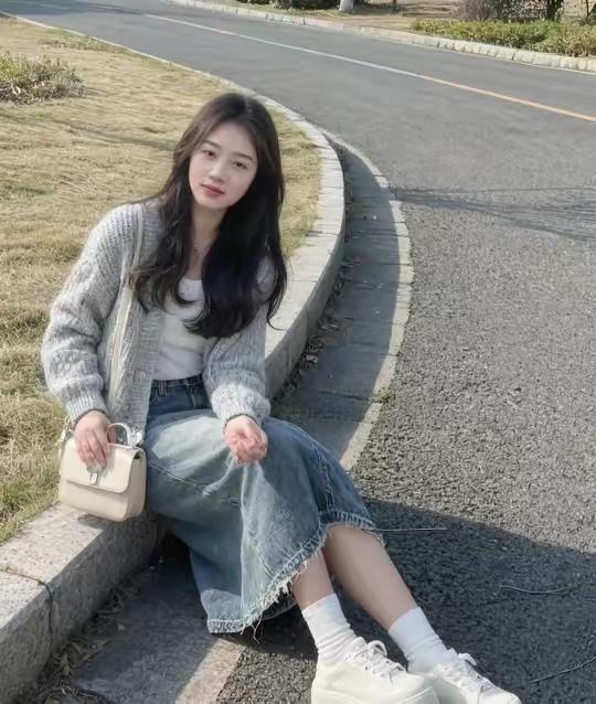 秋日穿搭指南:针织衫+牛仔裙,轻松自在吊带牛仔裙穿搭 休闲上衣牛仔裙
