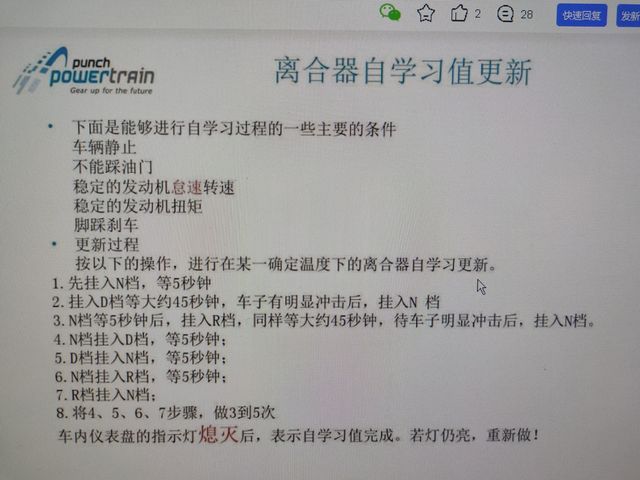 21款帝豪up自动挡顿挫解决过程 21款帝豪up 2年半36000多公里 从买车一直存在低速顿挫 起步闯动 高速降到低速再给油顿挫的问题,只有注意油脚才能有缓解。上网查过几次说是这个变速箱的通病,一想几万块的车有点小缺陷也能接受,所以一直也没特意去处理。前几天看到老款的帝豪在 变速箱自学习 后,顿挫感大大改善的帖子,自己上网试着也找了一下邦奇变速箱的自学习方法。按此方法自学习后,本人的车变成非常丝滑,基本没有顿挫感