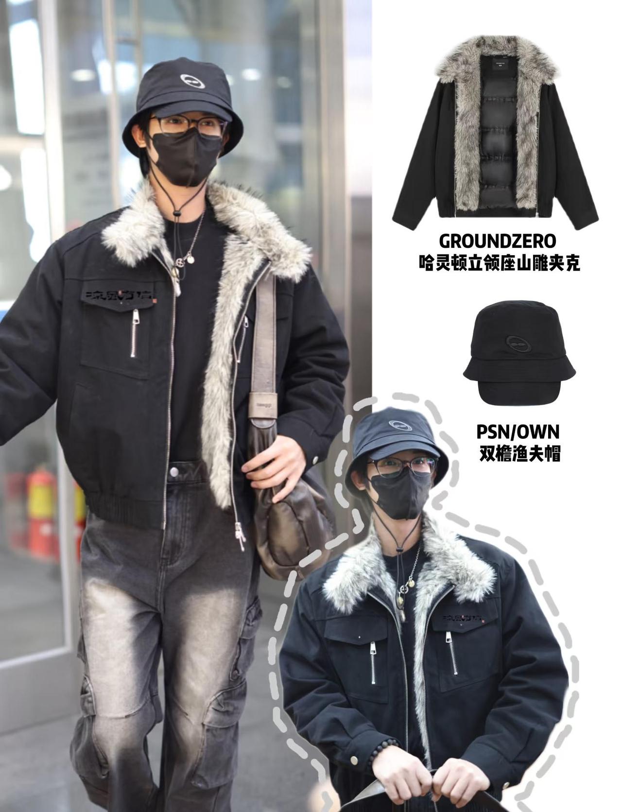 郑业成|轻松拿捏复古工装风 郑业成这波机场造型直接帅到我心巴上了!把复古工装风穿出痞帅氛围感,外套的毛领拼接瞬间拉满冬日保暖氛围,搭配同色系黑色渔夫帽,把cleanfit贯彻到底,帅得很轻松😎果然帅哥的私服品味也是如此高级!