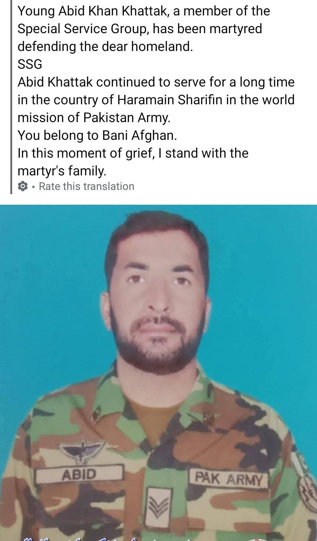 巴基斯坦陆军特种部队SSG在开普省班努县雨当地武装分子交火,导致1名SSG士兵阵亡。