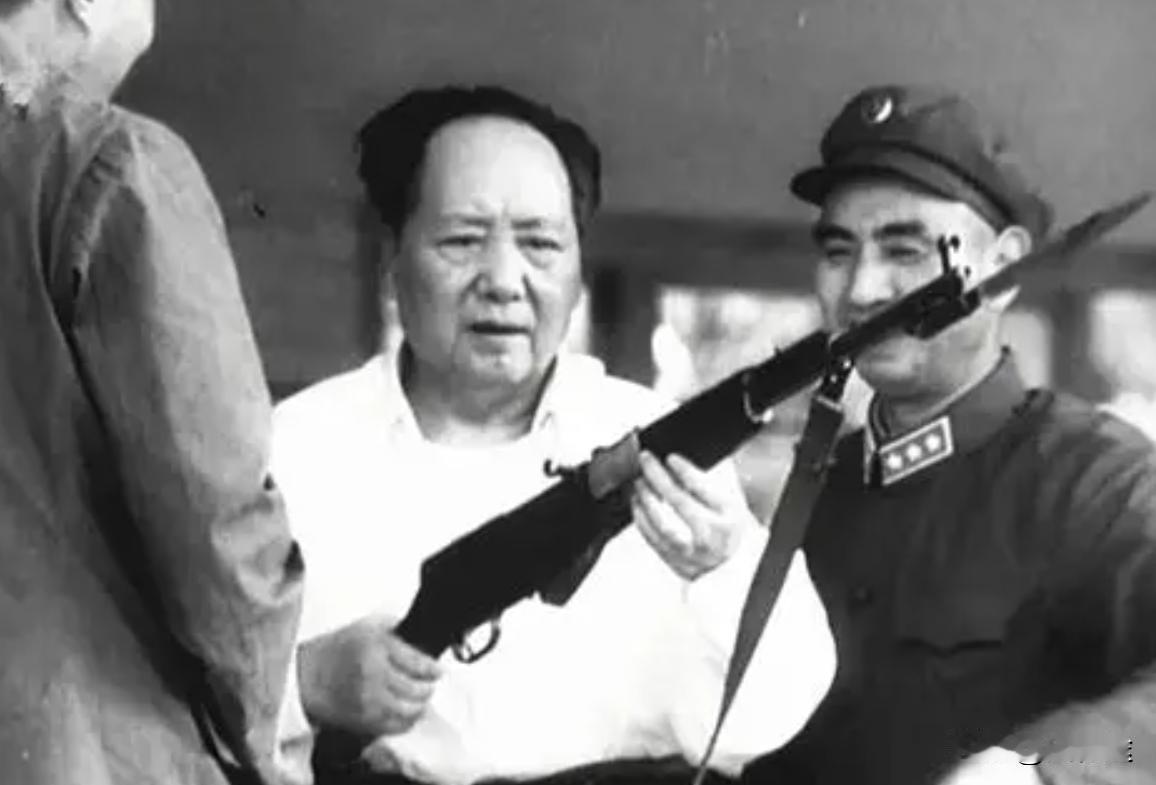 罗瑞卿大将和杨勇上将在给他们的老师介绍枪的构造,杨得志上将在后面偷笑,好温馨的画面,毛主席老人家他指挥千军万马,运筹帷幄千里之外,这是他唯一的持枪影像。 在军事博物馆偏暖的灯光下,有一支老步枪安安静静躺着。 说明牌只写了几行字,写着这枪参加过一九六四年全军大比武,说那年夏天有位老人举过它。 旁边那张黑白照片把故事补齐:毛主席把枪托往肩上一扣,半眯着眼往远处一瞄,罗瑞卿挨得很近,像随时准备接枪,后面杨勇、杨得志笑意挂在脸上,气氛有点家常。 照片拍的是一九六四年六月十五日下午,北京西郊射击场。 看台上坐着毛主席、刘少奇、朱德、周恩来、邓小平、董必武等一排中央领导,场下是一片军帽钢枪,都是北京军区、济南军区挑出来的尖兵。风把靶场的土味和机油味吹上看台,战士鞋底在地上蹭出灰印。 这阵势往前推,要从那年一月三日说起。 中央军委按毛主席的意见发指示,全军学“郭兴福教学法”,意思就是把兵教明白、本事练硬。 黑板上多了示意图,操场上多了口令声,谁家的动作更利索,谁家的枪更稳,心里都有杆秤。 各大军区越练越来劲,一合计,干脆搞大比武,把练得好的拉出来对一对。 自二月起,评比、竞赛铺成十八个片区,三千三百一十八个单位卷进来,三万三千多名官兵上阵。数字摆在那里,背后是操场上的汗水,是翻障碍时磨破的膝盖,是收操后在灯泡底下拆枪的手指。 贺龙爱跑现场。 侦察兵翻墙像壁虎,汽车从钢轨桥上慢慢挪过去,神枪手在各种姿势下一串串点靶,他看得眼睛发亮,回到北京就跟毛主席念叨。 汇报材料送上来,毛主席在简报边上写一句:“此等好事 能不能让我也看看”。字不多,意思够直。 贺龙心里有数,找总参谋长罗瑞卿碰头,商量把最能打的调到北京当这场“课堂”的主角。 六月,西郊射击场就有了那一排排靶标和一队队受阅部队。 节目轮番上,攀登、格斗、驾驶、奔袭,战士们喘着粗气,手臂青筋鼓着,心里清楚:今天既是给首长看,也是替自己那面军旗争气。 场子真正被点燃,是步枪速射。 济南军区的宋世哲走上场,人不算高,站在射击位置上却像钉在那里。 口令一落,压弹、托枪、瞄准、扣扳机,四十秒时间,换弹四次,打出四十发子弹,前方四十块钢板全被敲响。枪声串成一片,看台上掌声紧跟着砸下来,有人干脆站起身,耳根子都在发热。 毛主席看得很痛快,连声叫好。 宋世哲把枪退好,正准备往回走,台上飘下一句:“把神枪手的枪拿来看看。”一句话,底下一阵忙。宋世哲跑步上台,把自己的枪递给罗瑞卿,罗瑞卿再郑重交到毛主席手里,那动作像把全军的脸面往上托。 这支枪是五六式半自动步枪,国产的。 毛主席低头看了看机匣、枪托和瞄准具,再把枪往肩上一端,做了个瞄准动作,问:“这枪好准吗。”罗瑞卿回答得痛快,说这是自己国家造的,射得快,打得准,性能顶用,“打了几十年仗都没有用过这么好的枪”。这一句,不少老兵后来回想,都觉得扎心。 耐人寻味的在后面。中国人民解放军的缔造者,指挥过的部队,从湘江打到黄河,多是一张地图几盏灯。 身边人说,他平时极少佩枪,更多时候宁可把枪留给战士。 偏偏这一回,他像普通战士那样端起枪,眯一只眼,安安静静瞄向远处并不存在的靶标。 就在这个空当,摄影师按下快门。 镜头里,毛主席举枪,罗瑞卿略微俯身,像准备随时接应,杨勇、杨得志在后面憋不住笑,眼神里有骄傲,也有点“看老师体验学生家伙什”的玩笑味。 画面松弛,说不上庄严,却很好看。 一九六四年的这场大比武,在解放军历史上留下一笔。 十八个片区、三千三百一十八个单位、三万三千多名官兵摸爬滚打出来的本领,这一年硬生生抬高了一截。毛主席对那天的汇报表演评价很高,当场点名让这些“尖子”经验往全军推,还把话说得很透,军队就是学会两件事,一个会打,一个会走。 打仗不图一句大话,图的是“打就吃它一口,吃不了大的吃小的,吃了一口再吃一口”。 近战要熟,夜战要熟,陆地本领要扎实,水里还得会游,练武之外还得认字看书,文化跟不上,脑子迟钝,枪再好也白搭。 那支让毛主席举过一下的五六式,后来被送进军事博物馆,安静躺在玻璃后面,陪着那张黑白照片一直待到今天。走到展柜前的人,有的先看枪,有的先看照片。 有人惊讶这是毛主席唯一一张持枪影像,有人盯着几个将军脸上那点藏不住的笑意,还有人顺着说明牌上的年份,在心里掂量那一年发生过的事。 灯光落在木质枪托上,留下一片亮,那天西郊射击场上的热浪,仿佛就裹在这点亮光里。