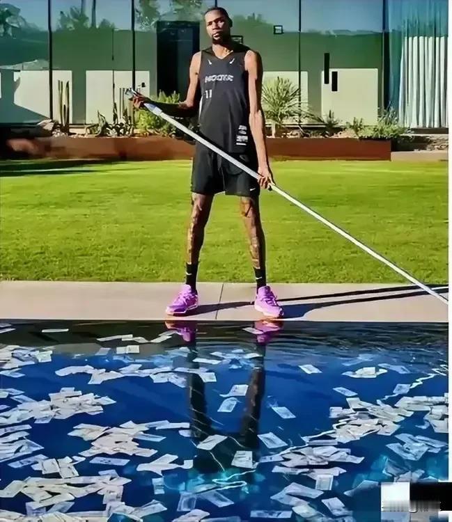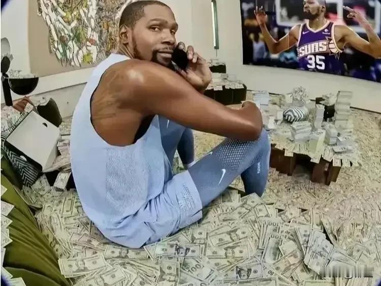 杜兰特喝不到斯嘉丽的洗澡水,那就用美元泡在水池里喝美元水! 在NBA有着联盟“老二”的杜兰特也有烦恼,那就是钱多得花不完,NBA合同薪资5.98亿美金,各种代言费约3亿美金,还有场外很多的收入等等,加上他只有一个母亲要养而已,这些钱根本是花不完。