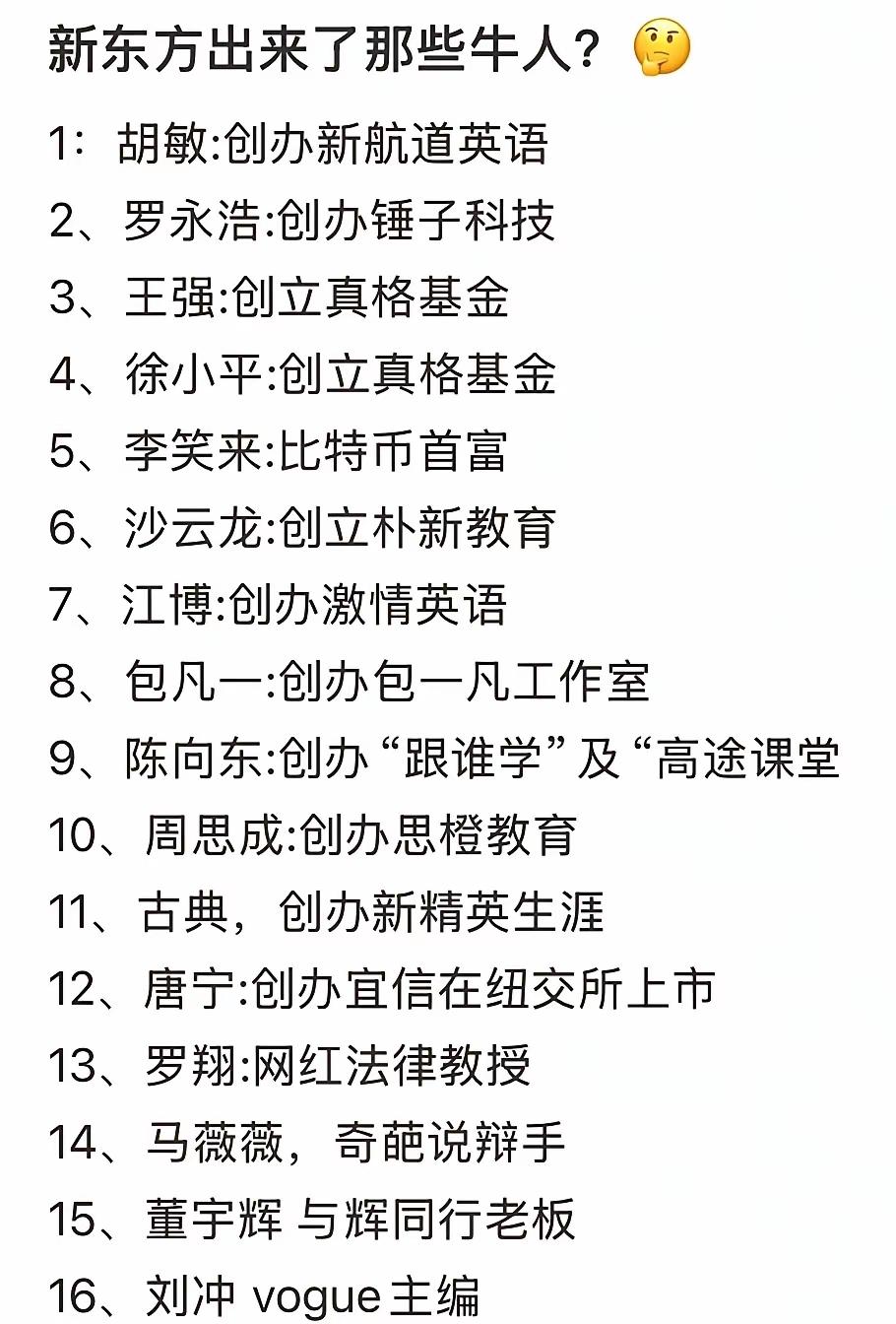 新东方号称新时代的黄埔军校,看看人家走出来的牛人有多少吧? 只是老俞留不住人哇。