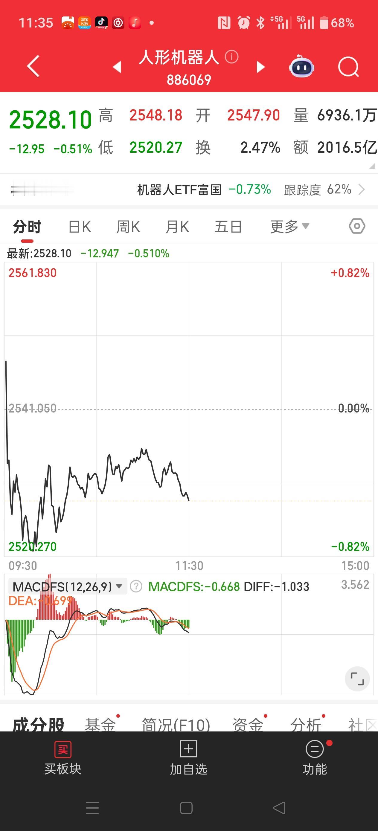 悲哀啊! 是不是感觉力竭了! 渣男骗炮!又一次骗炮! 太卑劣了! 今天涨的好的ai应用。 商业航天跟玩机器人的资金是一路人。两头不能同时涨。今天商业航天回流,机器人就嘎了! 昨天追进去的,今天也不好过! 太难了! 期待下午吧! 要不然,最后收盘大a也可能维持0%。 挺无味的!