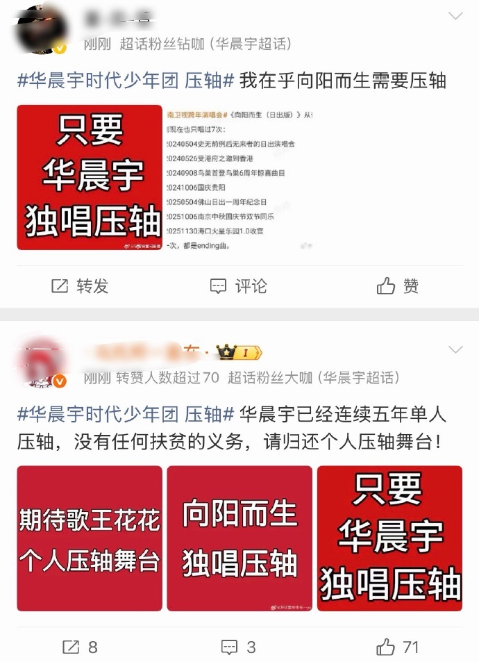 华晨宇粉丝要求归还华晨宇独唱压轴舞台华晨宇时代少年团压轴