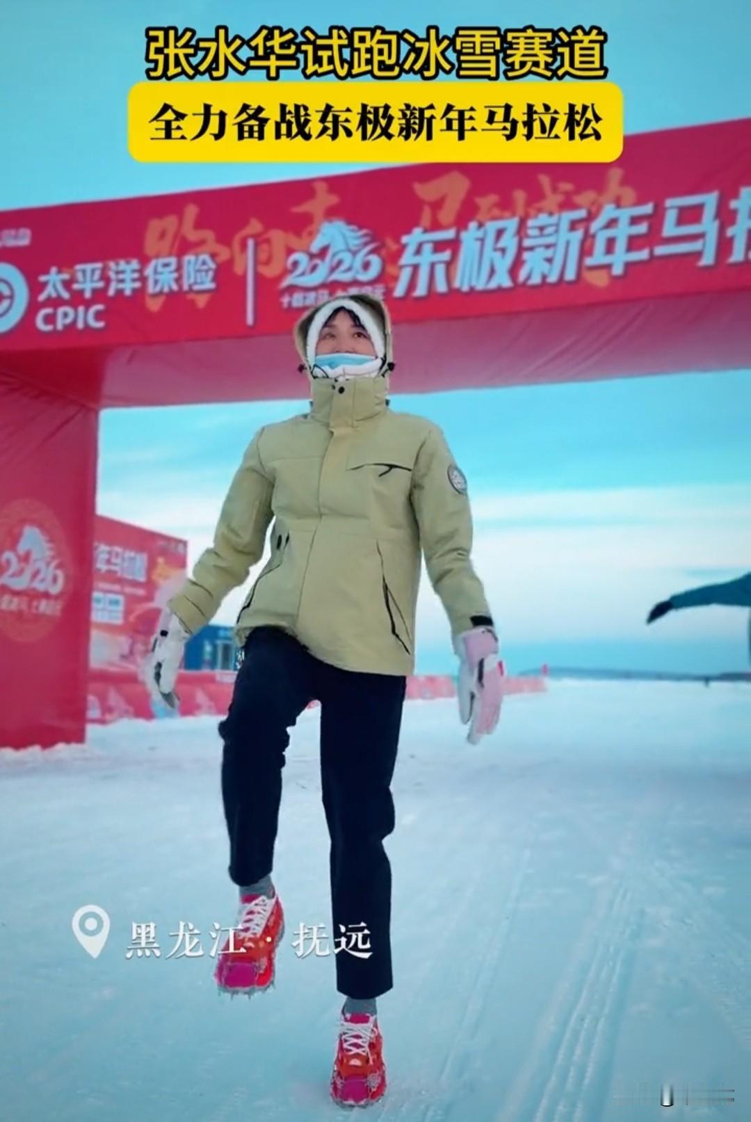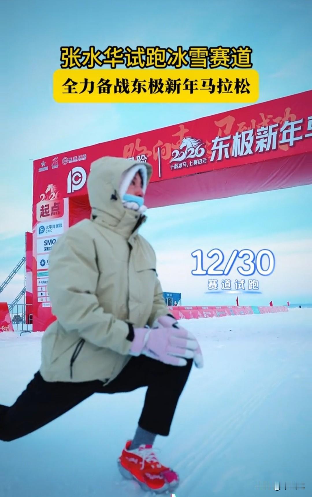 东极新年马拉松进入倒计时了,张水华正在全力备战,她冒着风雪,提前来到赛道上试跑,做赛前拉伸和场地适应。 经历了一系列风波,张水华流量不降反增,她现在一举一动,都能登上头条热搜,有媒体称她的商业价值堪比吴艳妮。 361度会不会有点后悔,跟张水华解约是不是太草率了。 这场原本仅600人参加的默默无闻的小众赛事,因为邀请到“话题女王”和“最快女护士”张水华,一下子成了各大媒体竞相关注的焦点。 除了张水华,有“马拉松女神”之称的李美珍也来了,她是组委会特邀嘉宾,作为最美星推官参加比赛。 “最快女护士”和“马拉松女神”同场pk,谁会更胜一筹,冠军到底花落谁家,悬念很快就要揭晓了,这场比赛无疑引起了跑友们的极大兴趣。 张水华和李美珍,两人都是马拉松国际健将,李美珍最好成绩是2小时27分51秒,张水华最好成绩是2小时30分37秒。 2025年中国女子马拉松最新排名,李美珍排在第6位,张水华排在第17位。 李美珍手握三个代言,而张水华刚刚跟361解约。 李美珍还有一个张水华无法比拟的优势,那就是李美珍比张水华年轻8岁。 张水华今年34岁,李美珍才26岁。 单从以往成绩来看,李美珍无疑更胜一筹。 但比赛不单单看表面成绩,除了实力和临场发挥,还会受到个人状态、环境和竞技策略等多种因素的影响。 现在下结论还为时过早。 希望张水华在新的一年中,走出往日阴霾,新年新气象,争取马到成功。