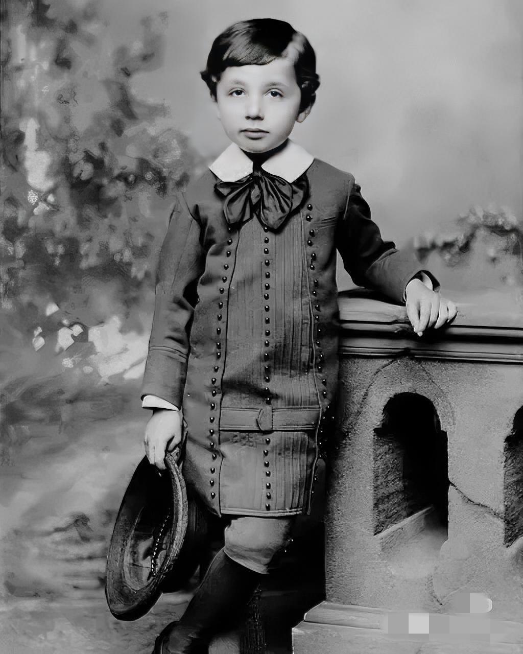 1884年,5岁的爱因斯坦,在德国拍的照片。此时,爱因斯坦一家住在德国慕尼黑。他