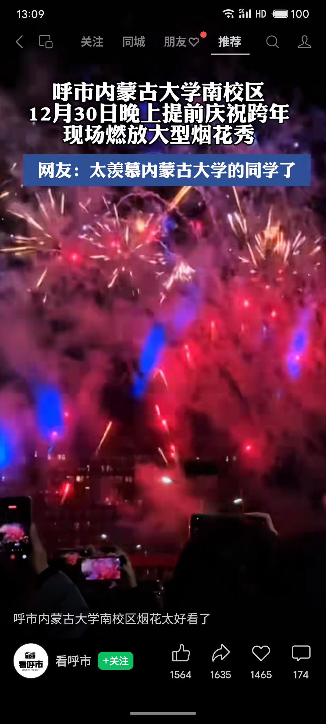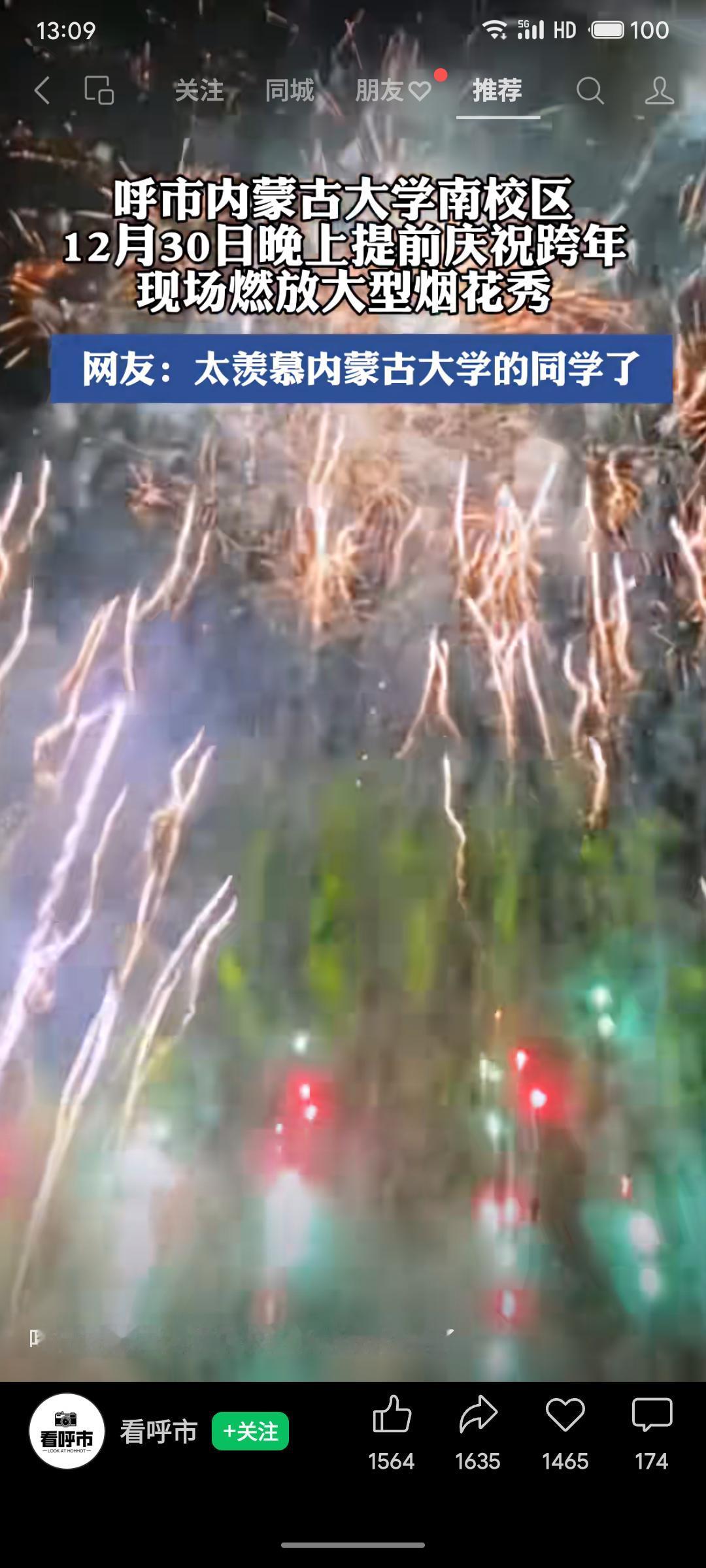 内蒙古大学南校区于12月30日晚提前举行跨年大型烟花秀,绚丽场面引发网友广泛关注与羡慕,成为当地热门话题。