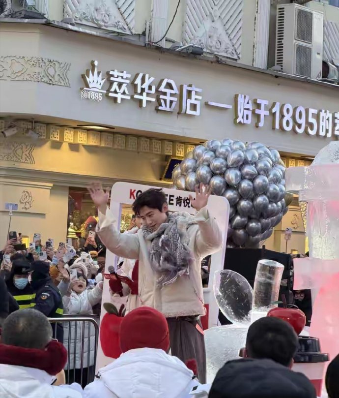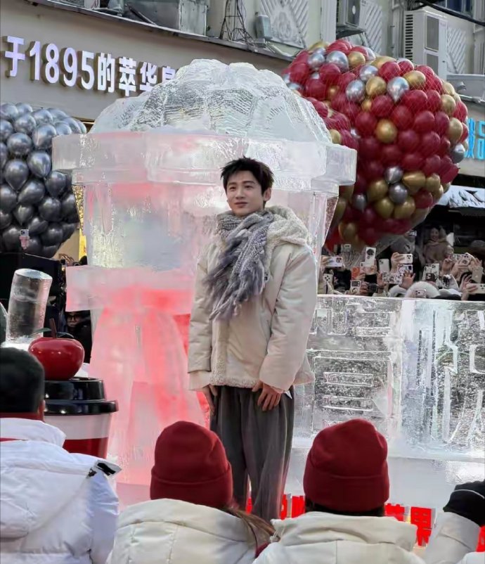 白敬亭哈尔滨中央大街出席活动,穿米色羽绒服隔着屏幕都帅气迷人