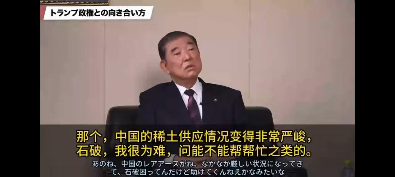 日本,这点出息!—— 节目中,一个嘉宾对石破茂说:“特朗普给人的感觉很好,对吧?” “是,没有一次感觉不好的。有一次,他对我说,‘中国的稀土供应形势严峻,你能不能帮帮忙?’” “真的?特朗普主动请求帮忙,这罕见吧?” “是。外务省的人在旁边,一脸惊讶。” 点评: 一、井底之蛙,聊以自慰。 二、如果是朋友找你帮忙,无论帮了与否,你会向别人提吗? 三、设想一下,特朗普打个电话问一下这个事,石破茂等日本人什么表情?这是世界上最生动的画面。