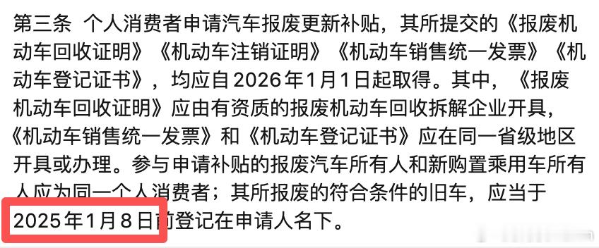 昨天粗看看,还以为报废车是2026年1月8号之前过户就行,才发现是2025年1月8号前……记得朋友圈里有好多车商这个月收了很多报废车……难搞了汽场全开