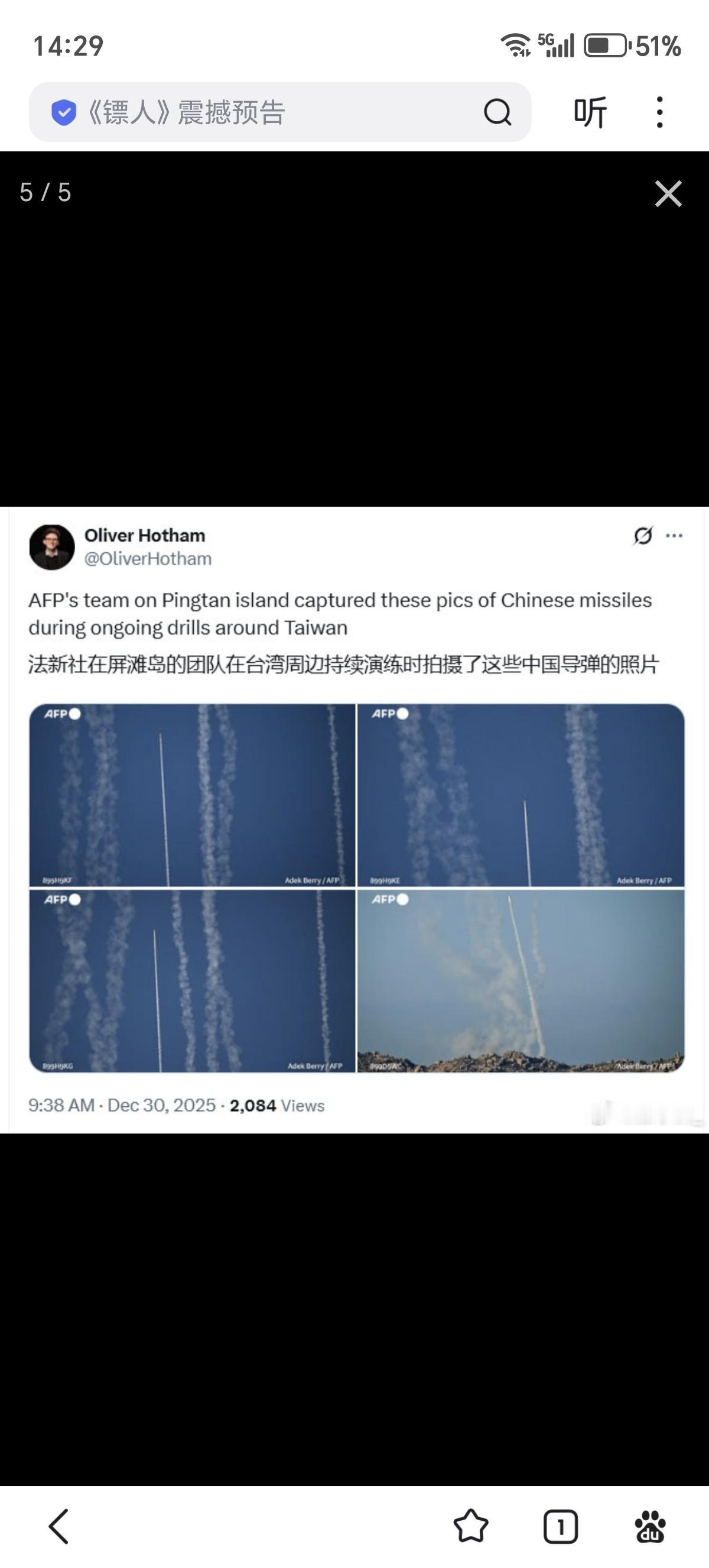 法新社团队在平潭岛拍到远箱火升空的壮观景象,不过他们误以为是导弹。