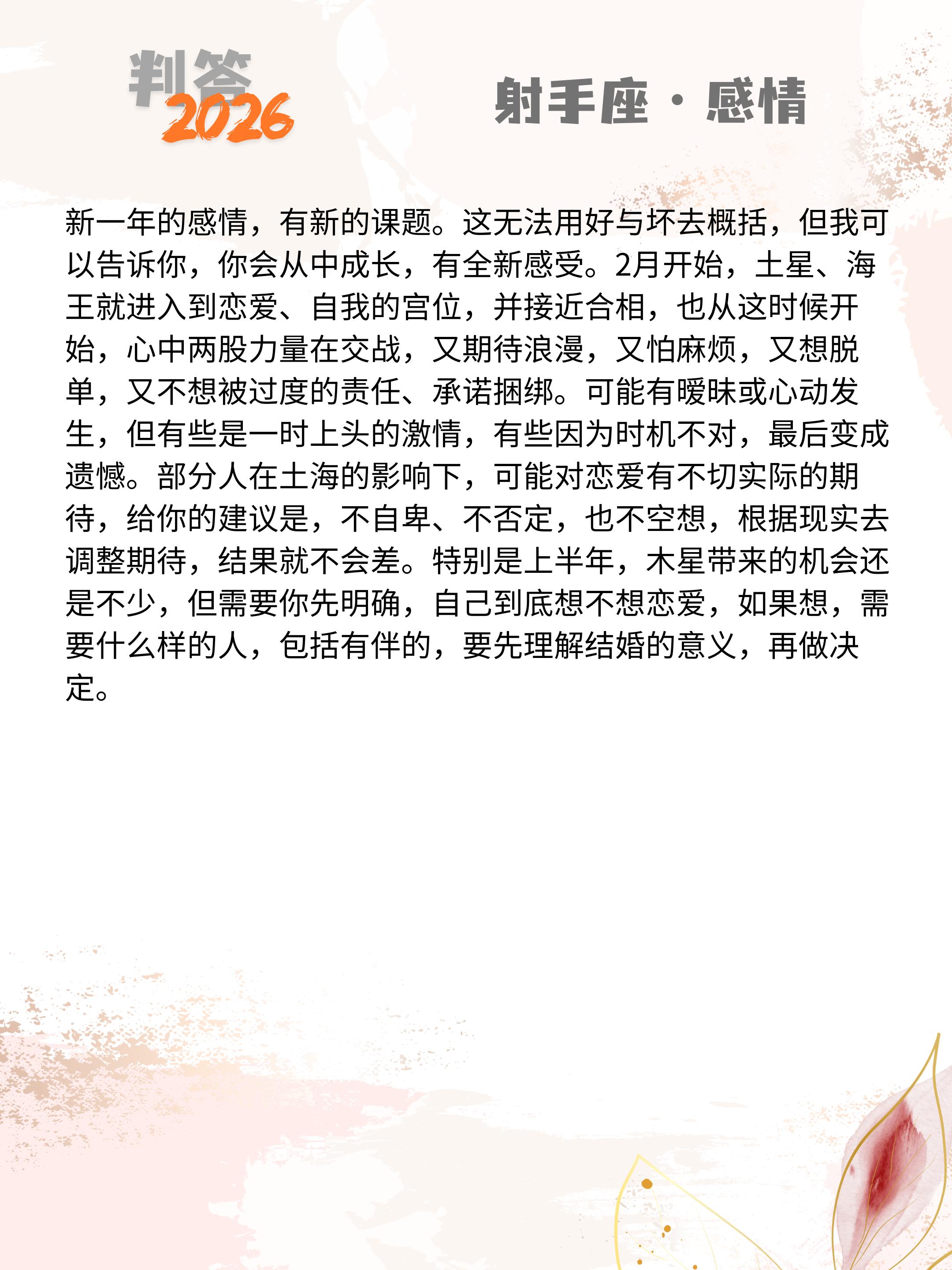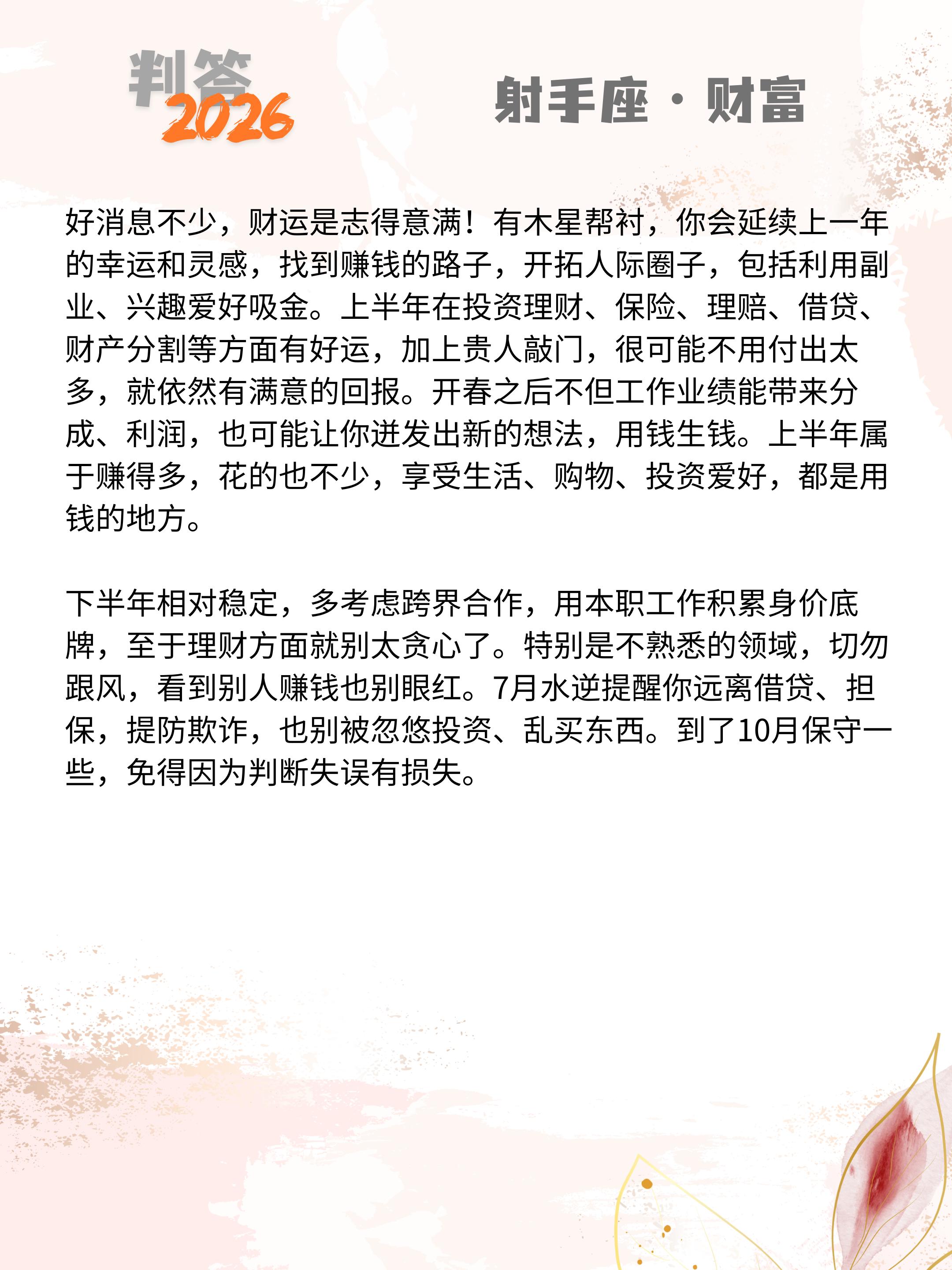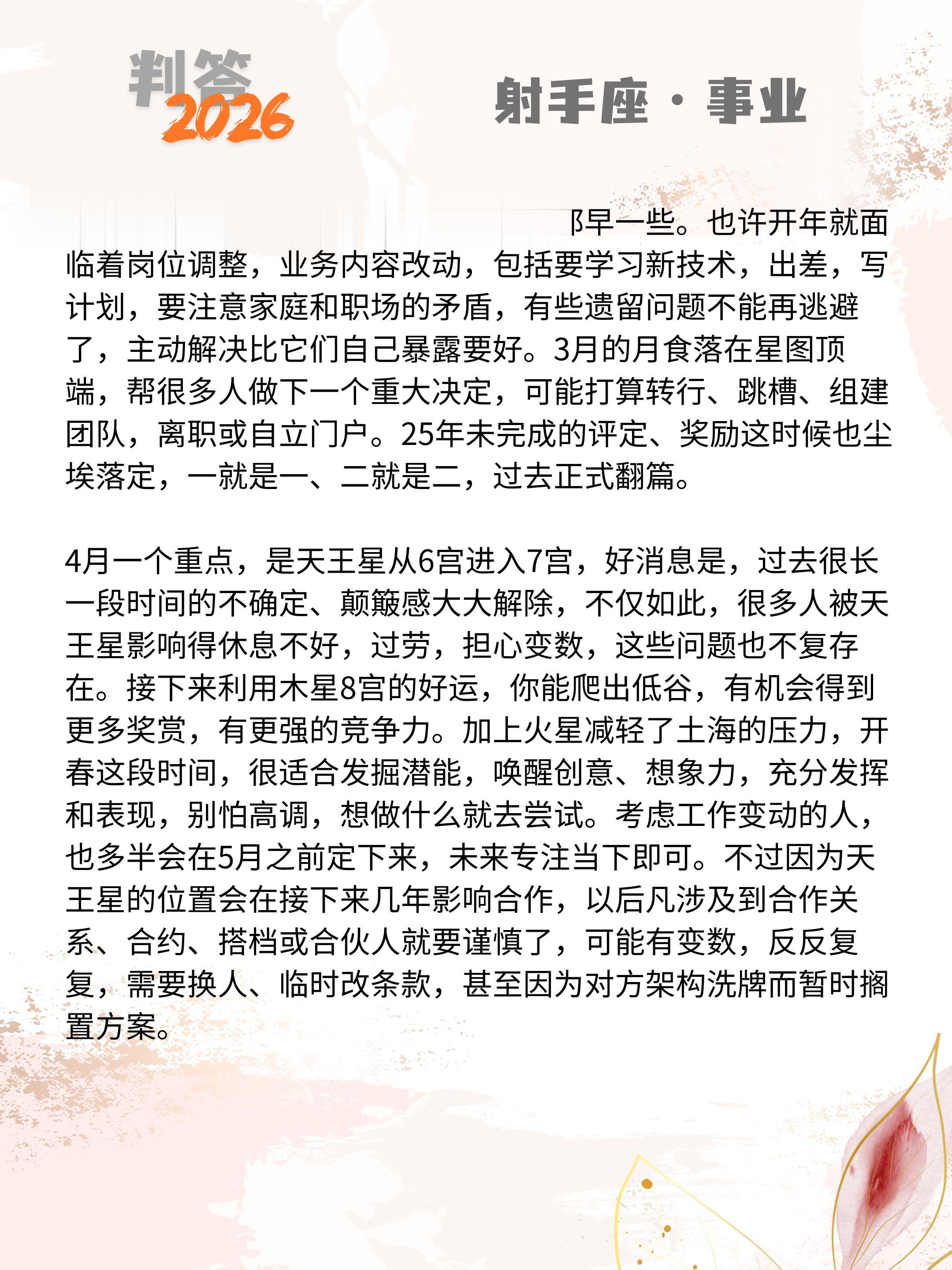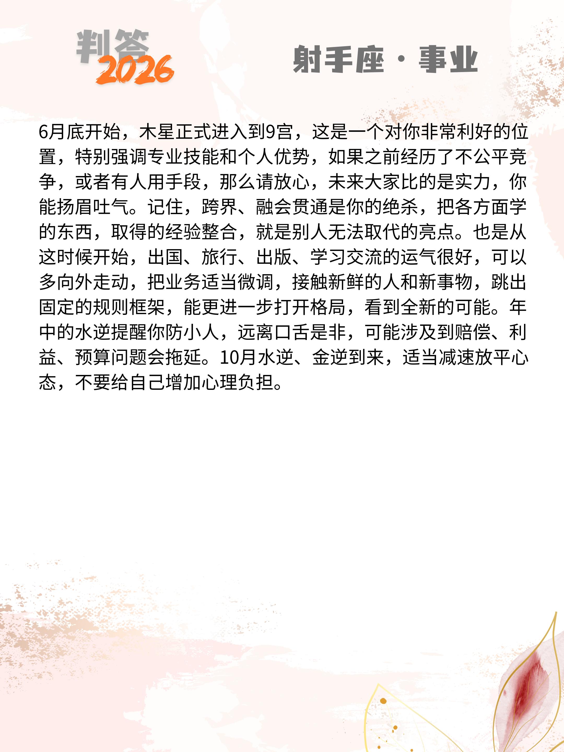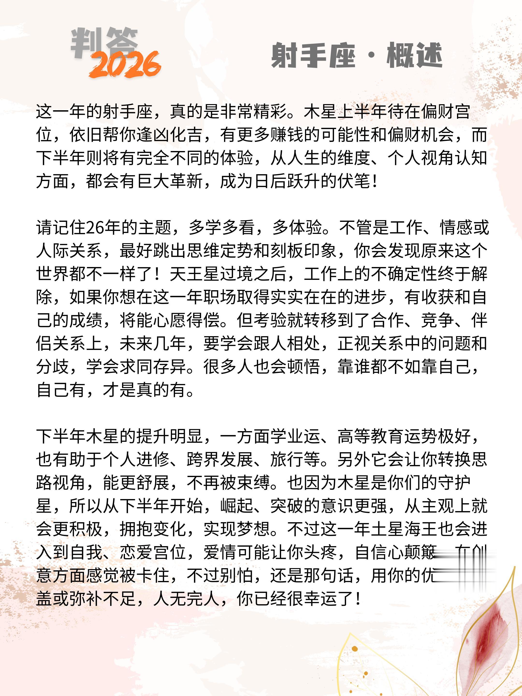 判答独家· 2026年运丨射手座预报来啦。愿你们自在圆满,幸福平安!!...