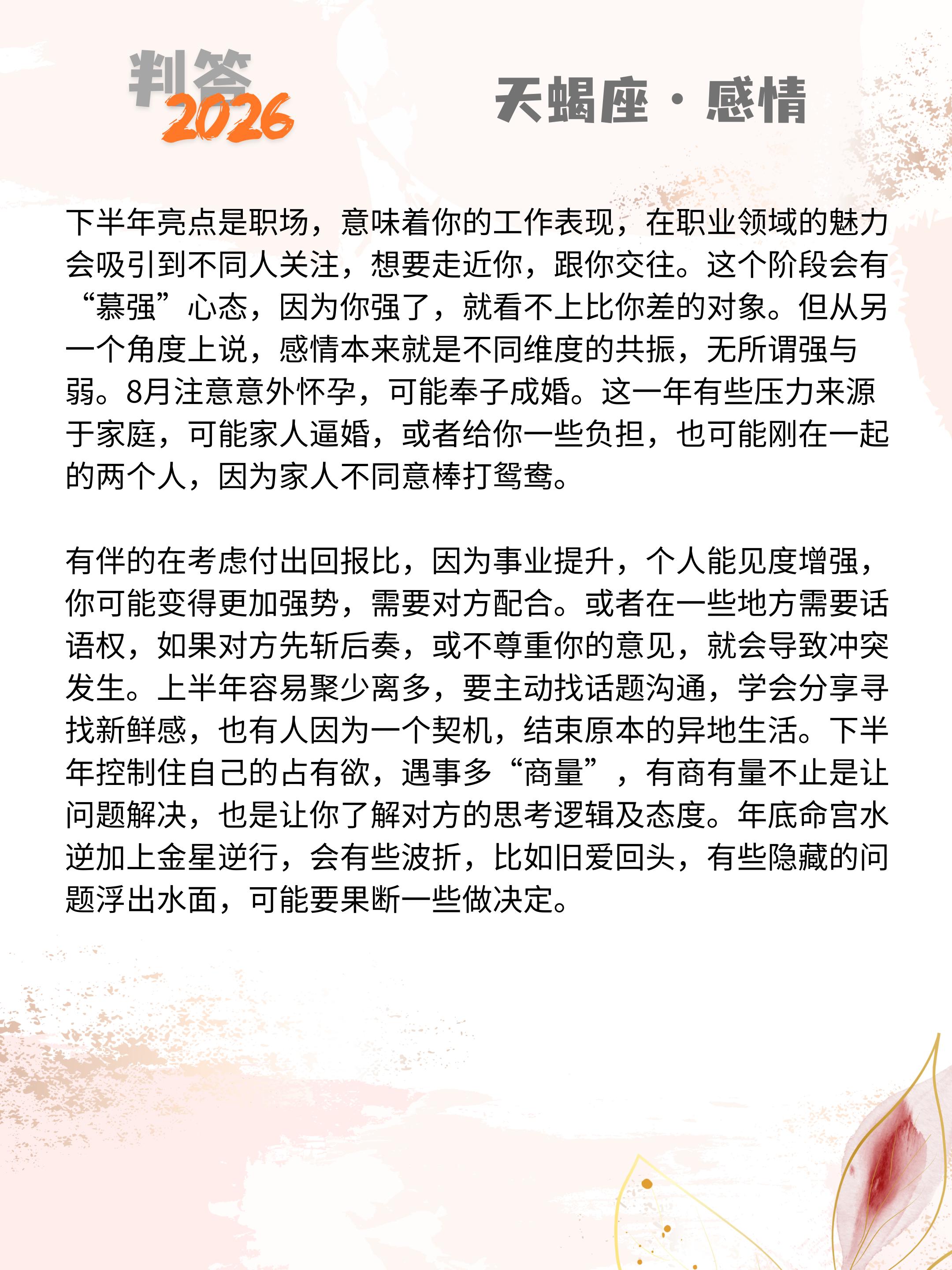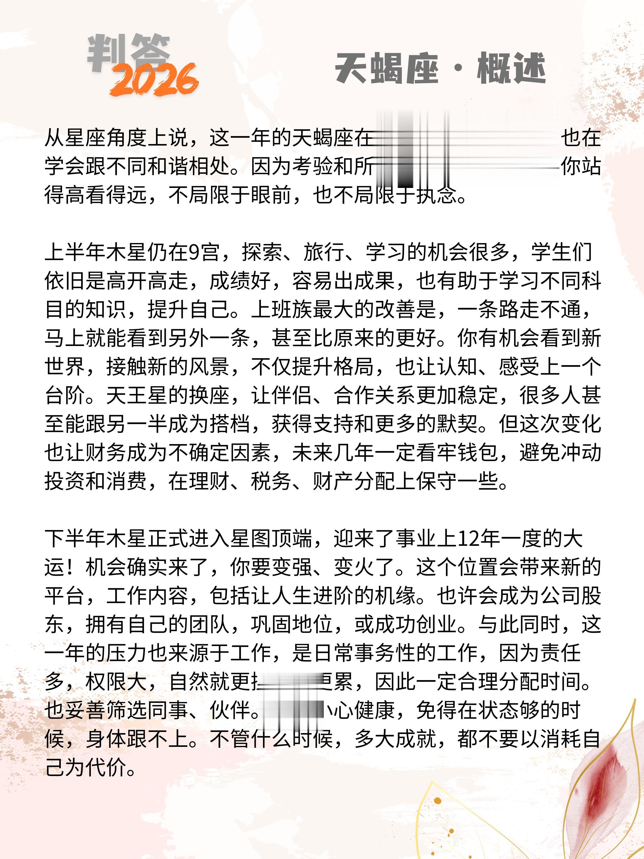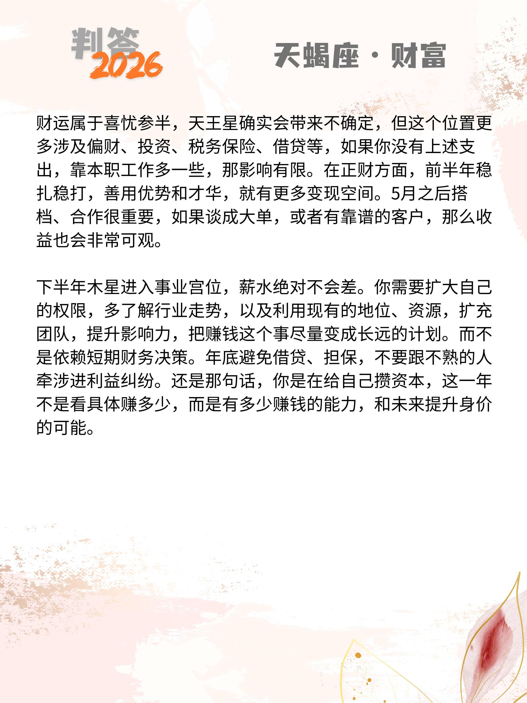 判答独家· 2026年运丨天蝎座预报来啦。愿你们步步生莲,好运连连!! 参考太阳+上升