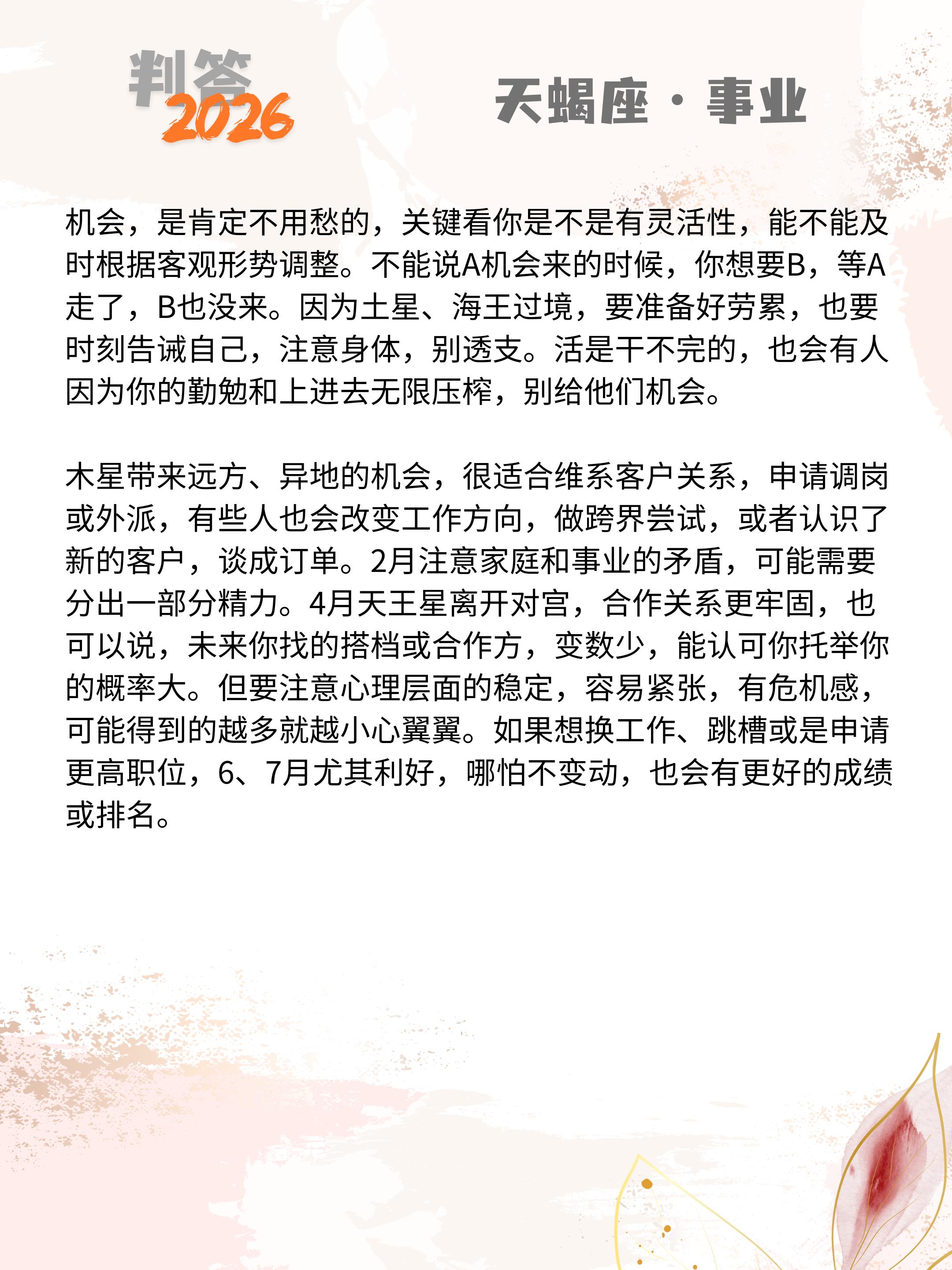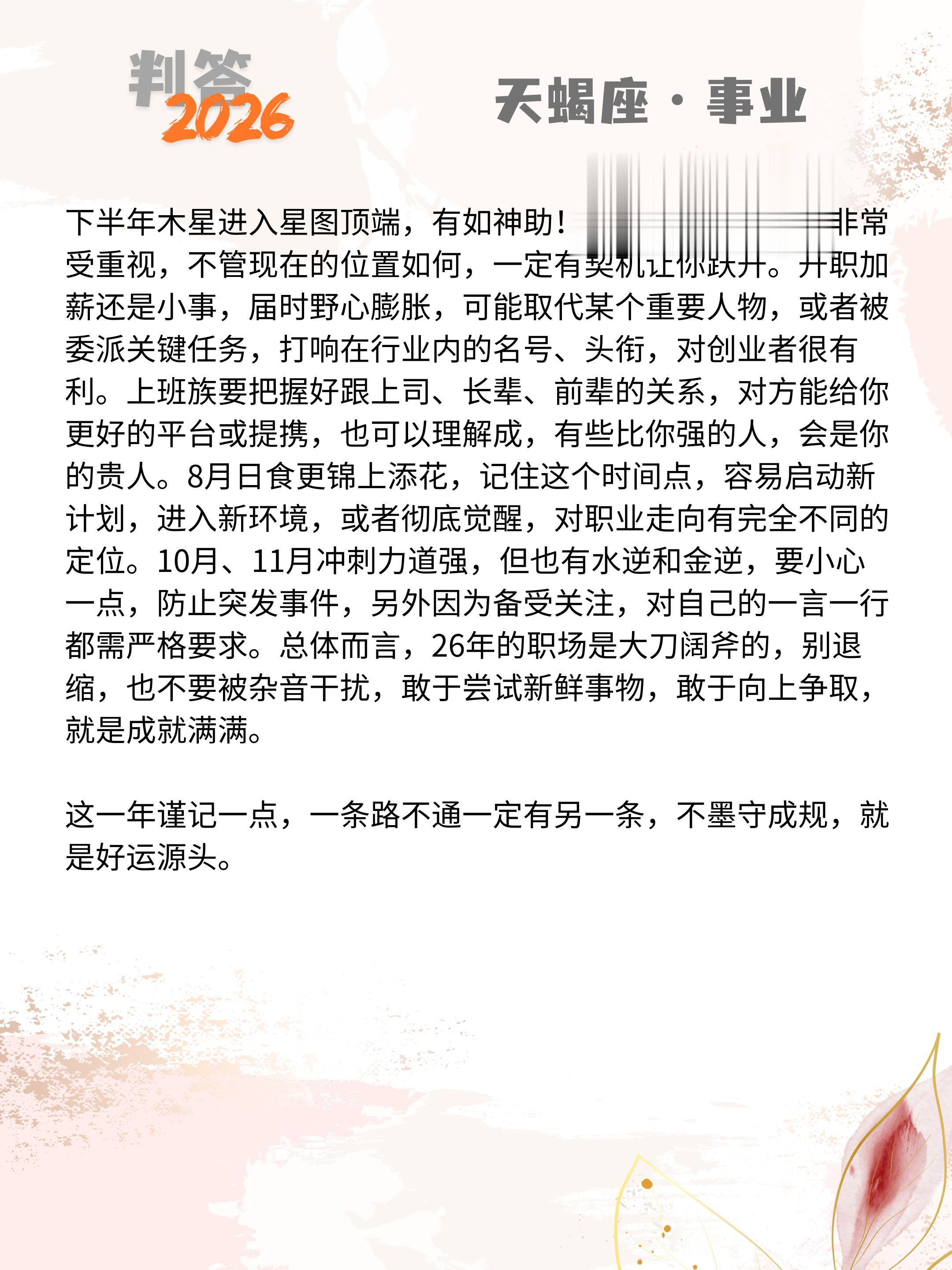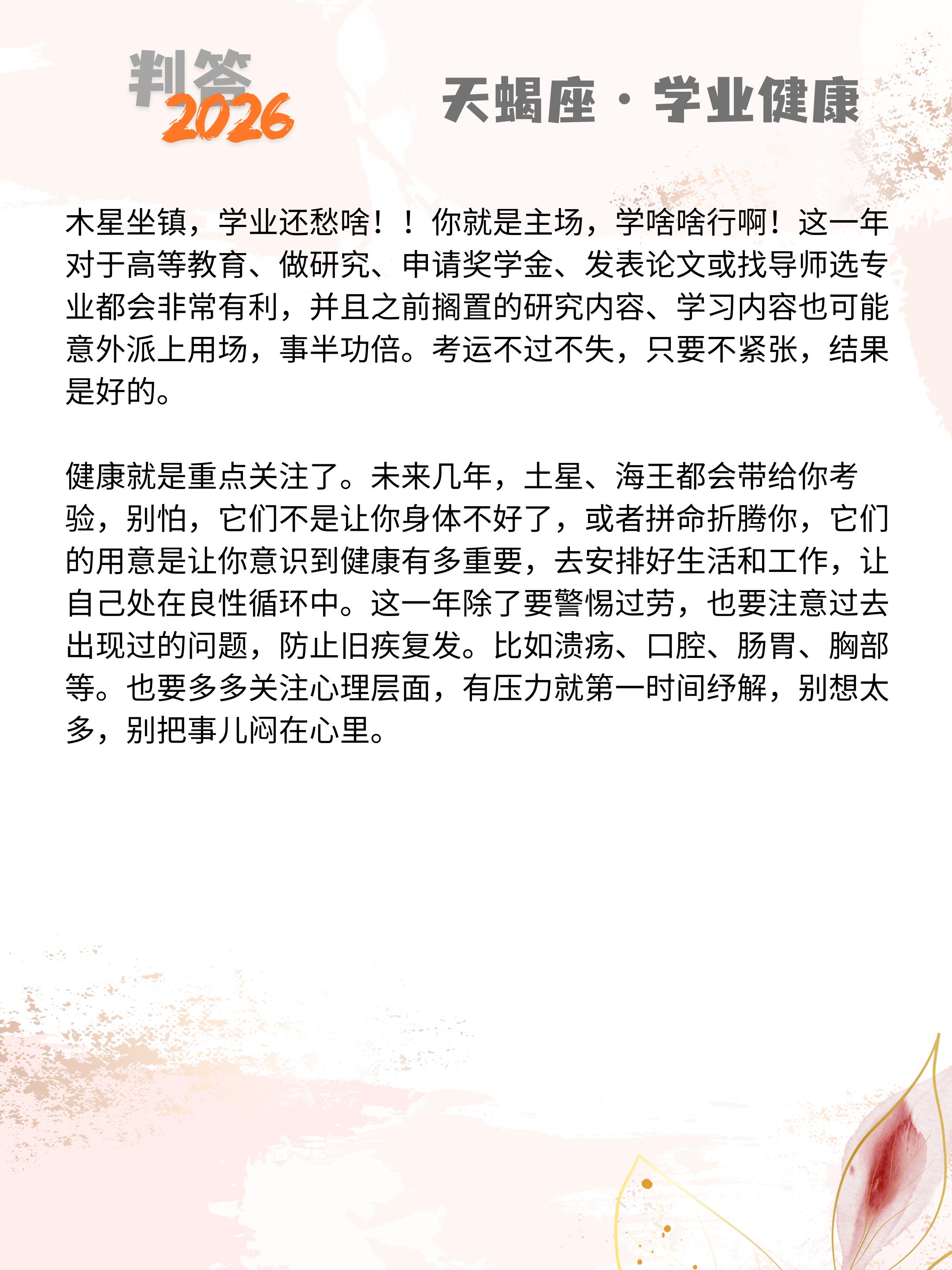 判答独家· 2026年运丨天蝎座预报来啦。愿你们步步生莲,好运连连!! 参考太阳+上升