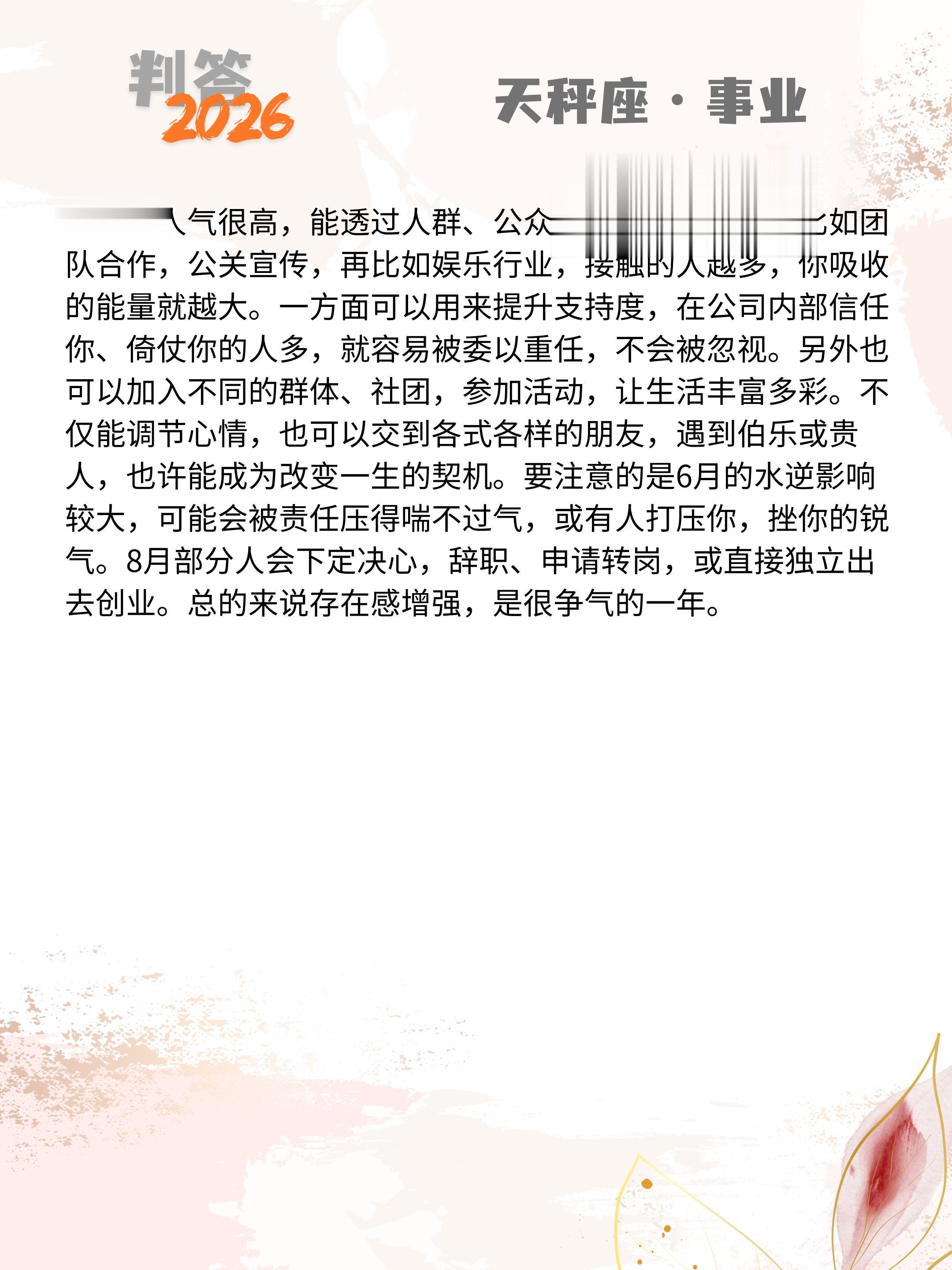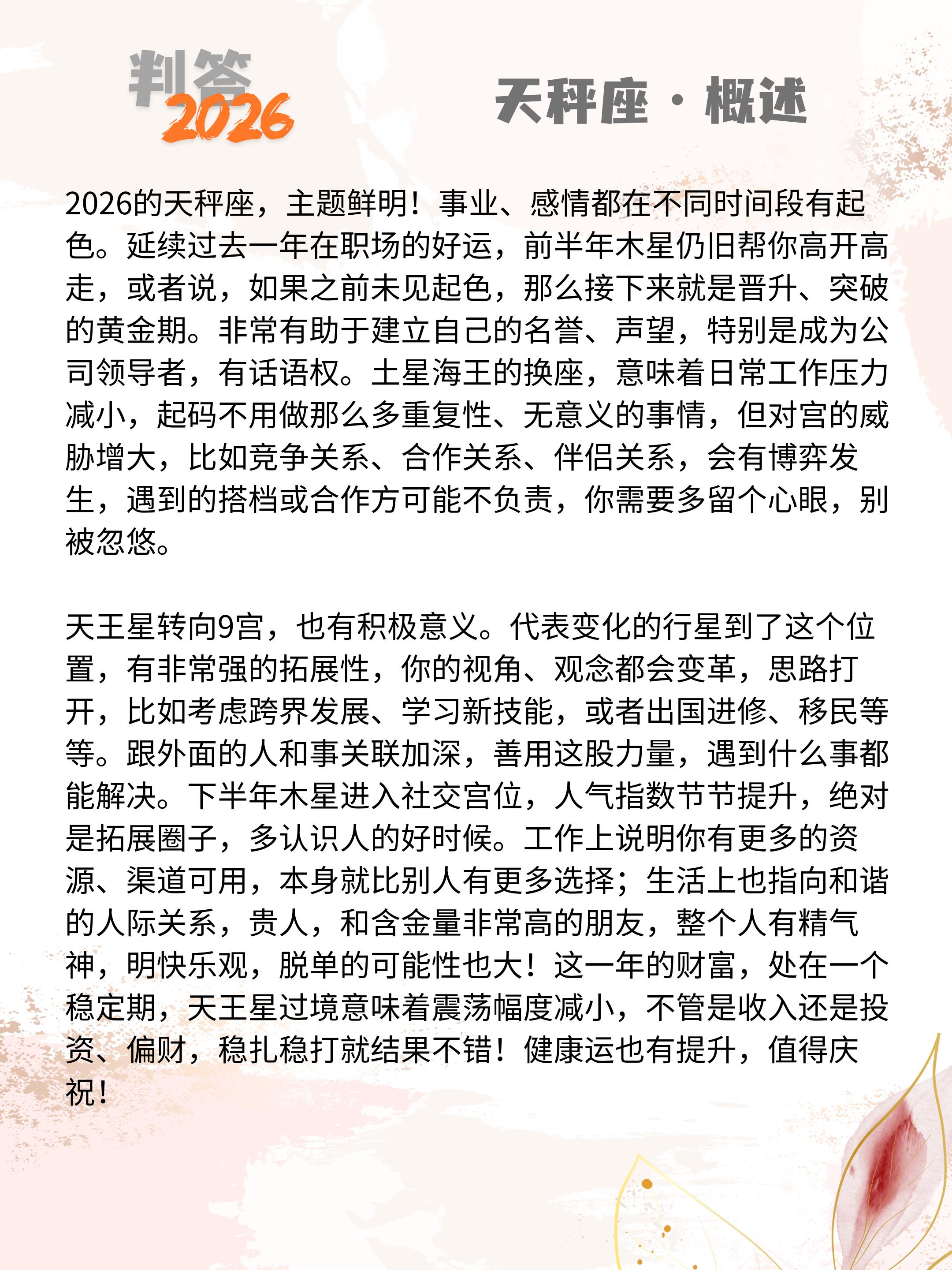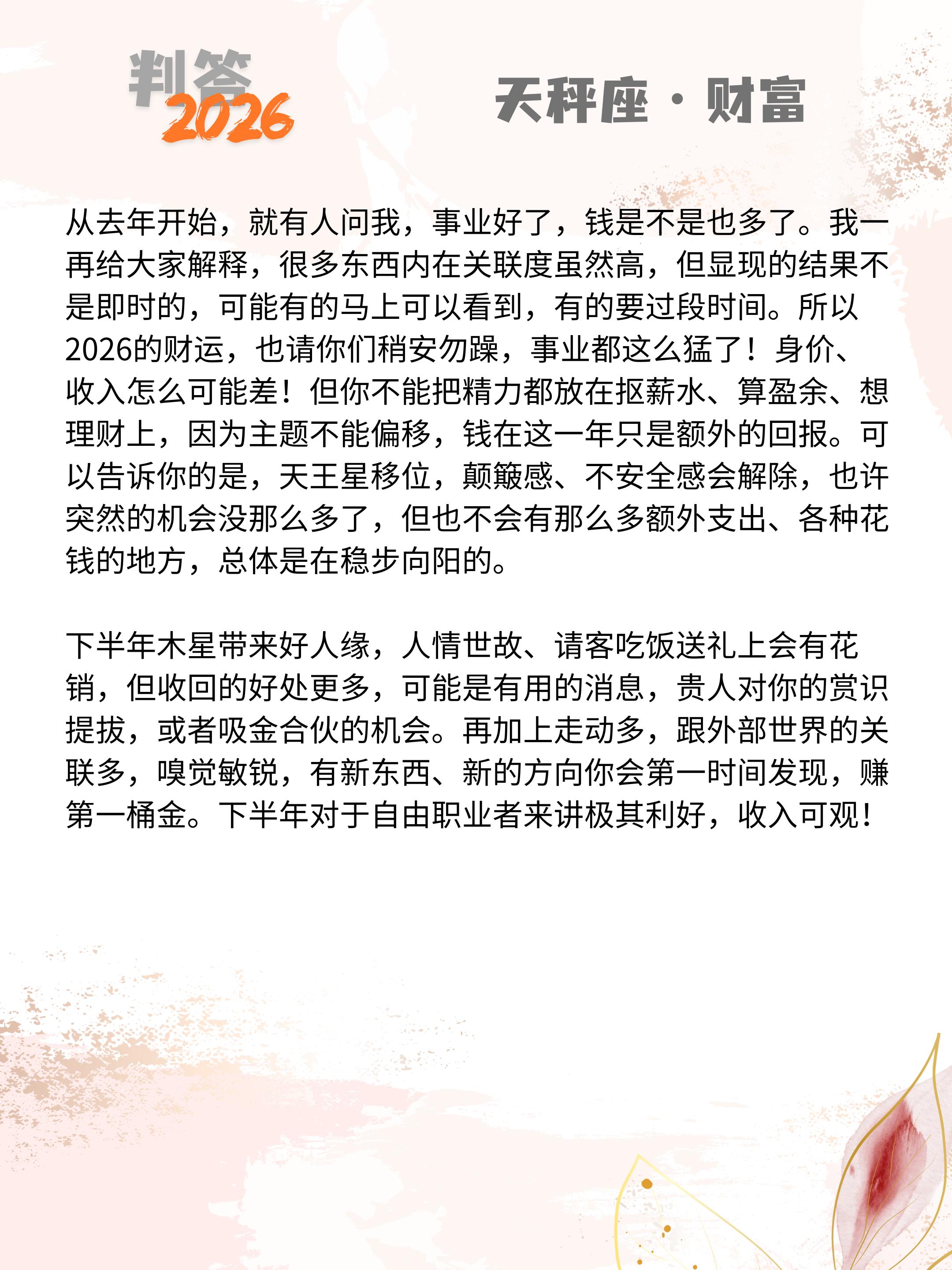 判答独家· 2026年运丨天秤座预报来啦。愿你们好运护体,无忧无虑!!...