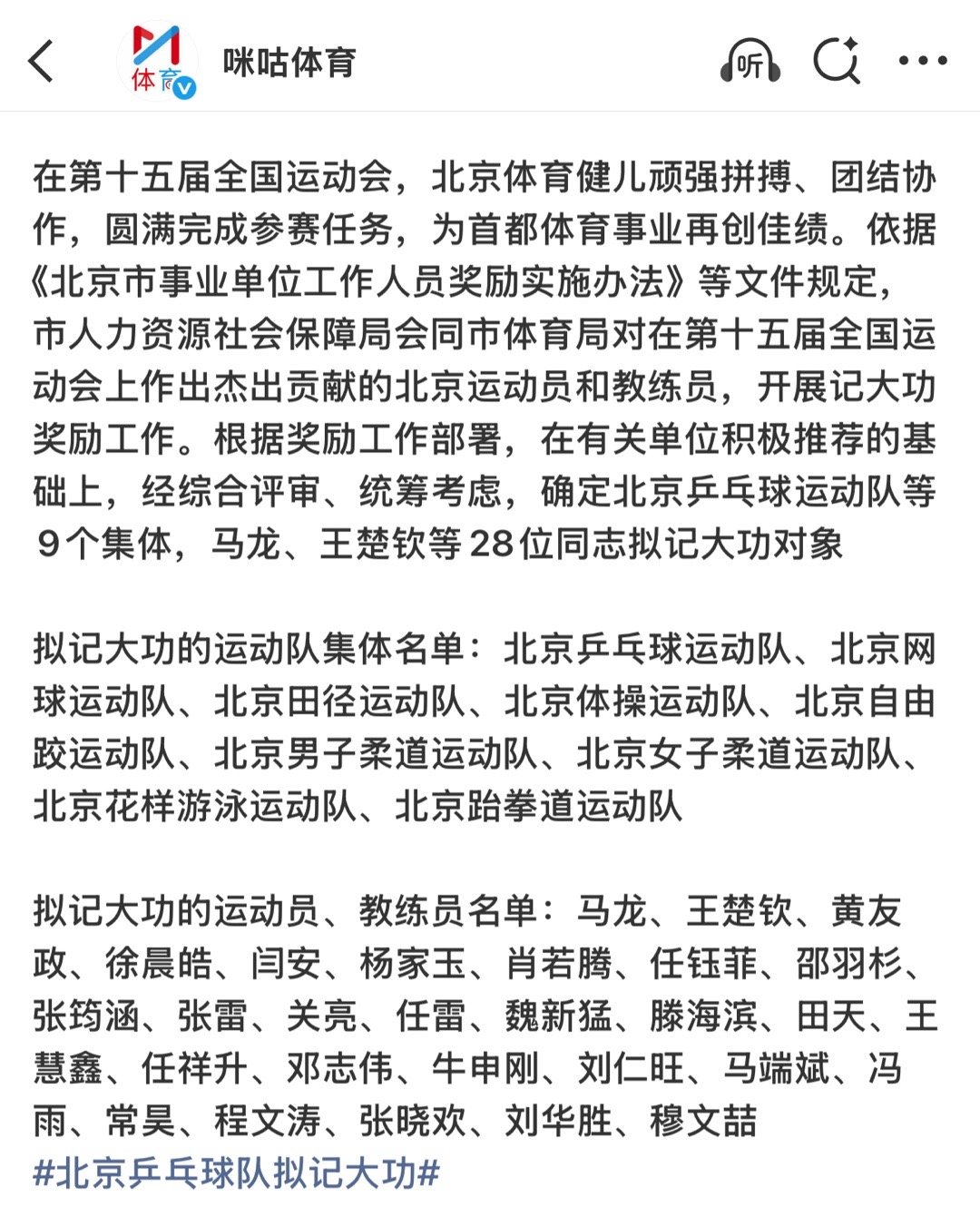 J队也太小气了 乒乓球可是为北京贡献了3金 怎么能只赏男团金 不赏U18男团女团金呢北京队大湾区全运会一共也才拿了12枚金牌呀!