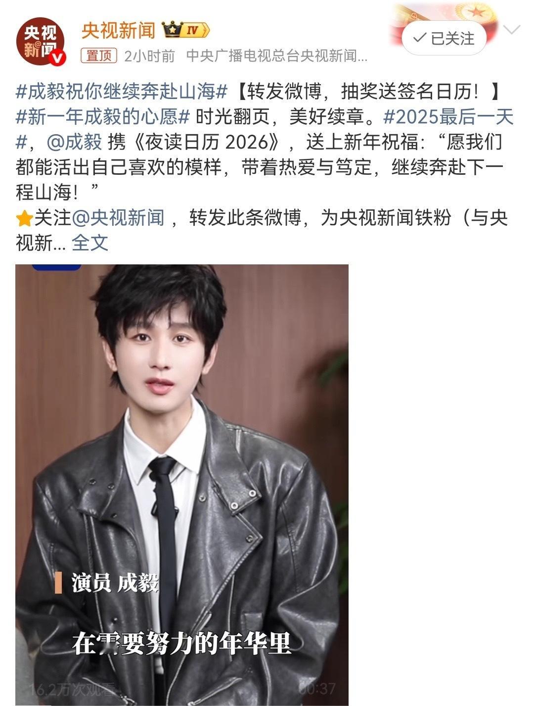 2025最后一天,成毅央视新闻携手送上新年祝福奔赴2026!主流认可根生苗红的国